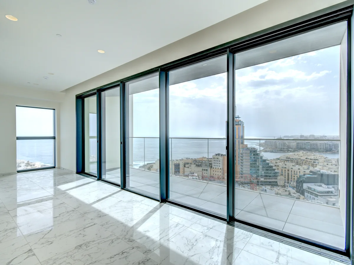 The apartment, with a footprint of 70sqm is offered fully finished including A/C’s and internal doors. The attractive layout is well planned with a separate bedroom overlooking views of St George's Bay and the wonderful seas beyond, together with a full bathroom and laundry. The spacious open plan kitchen living dining room leads out onto a spectacular terrace enjoying the stunning sea and city views views where beautiful sunrises bathe the property with warmth from the early hours of the morning.