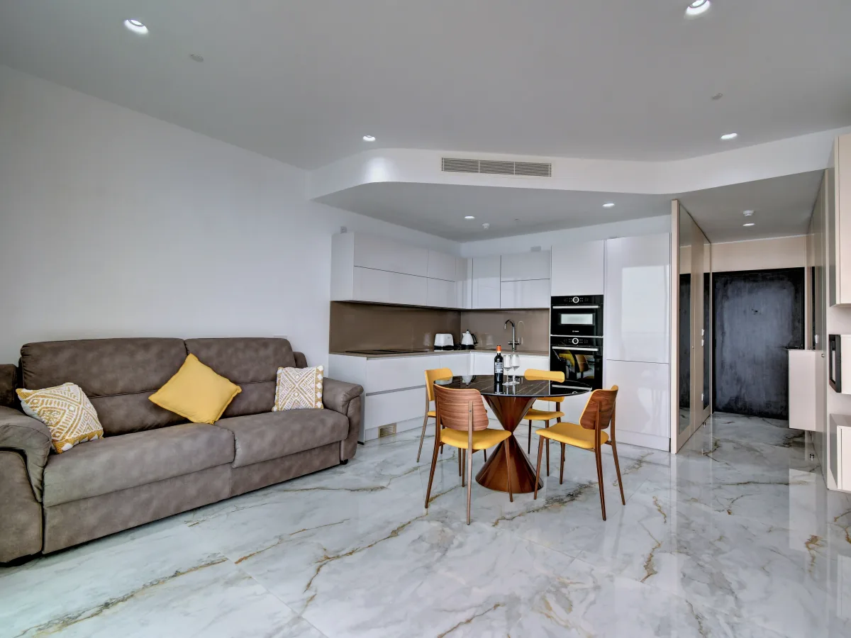 The layout comprises of an open plan kitchen, dining and living area that opens up to a terrace with magnificent city and seaviews, one double bedroom with en-suite facilities and a guest bathroom.