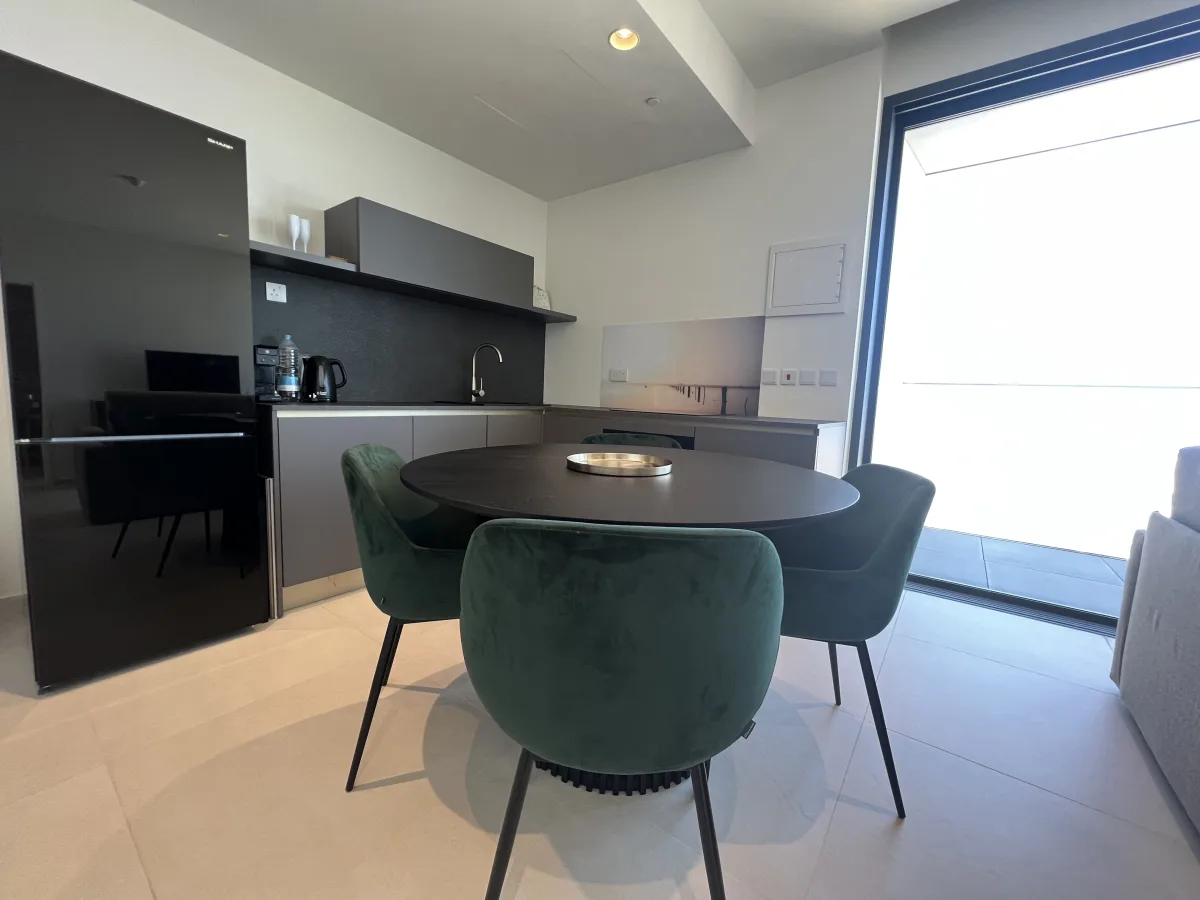 As one enters into the residents’ section of the Tower it is apparent that no expense has been spared, with a welcoming reception, card access to the communal parts and finishes that one would find it 5* hotels around the world. The apartment has a well lit and spacious entrance hall which leads to an open plan kitchen, dining and living area. The eyes get drawn immediately to the breathtaking view, as light and a sense of space, fills the room. The bedroom is very nicely sized with ample storage and again, stunning views across St. Julian's towards Valletta and beyond.