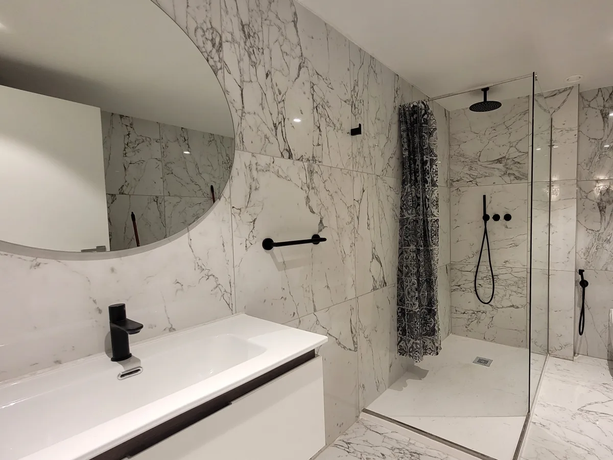 Brand-new studio apartment at Mercury Suites, where thoughtful design meets modern functionality. Floor-to-ceiling windows flood the apartment with natural light, while the intelligent layout maximizes every space creating a spacious, airy atmosphere. The open-plan layout comprises a kitchen, living and dining area leading out to a balcony overlooking the Piazza, an open bedroom, a wardrobe room, and a bathroom with a walk-in shower.