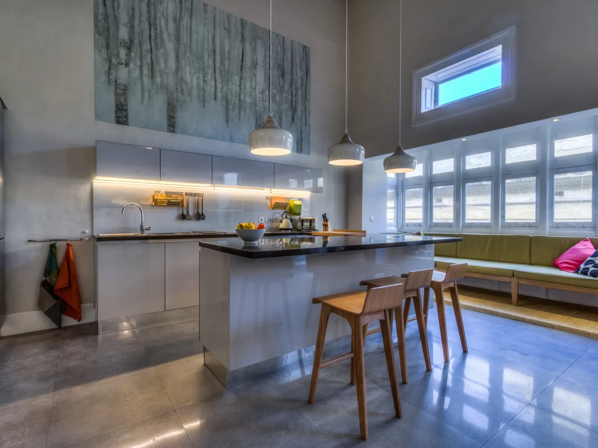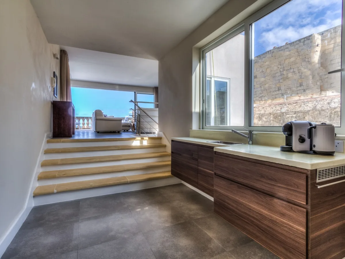 This bright and spacious residence comprises a total living space of 240sqm and a further 50sqm of open terrace and sun deck offering both stunning distant sea views and spectacular views of the Carmelite church and Valletta roof tops. Guests will be able to enjoy their own spacious bedroom with en-suite bathroom, as well as the entire living area, fully equipped kitchen, library and terraces.