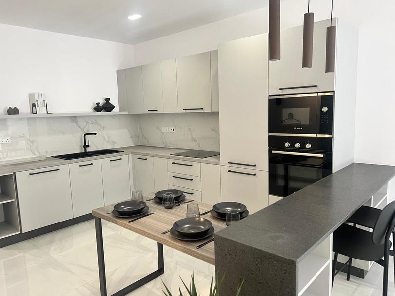 No expense was spared in finishing this property to perfectly reflect the designer’s vision. Elegantly crafted, it features a sophisticated open-plan kitchen, living, and dining area that flows seamlessly onto a spacious terrace, ideal for entertaining. The kitchen is fully equipped with premium Bosch appliances, including an induction hob and a dishwasher, combining style with functionality.