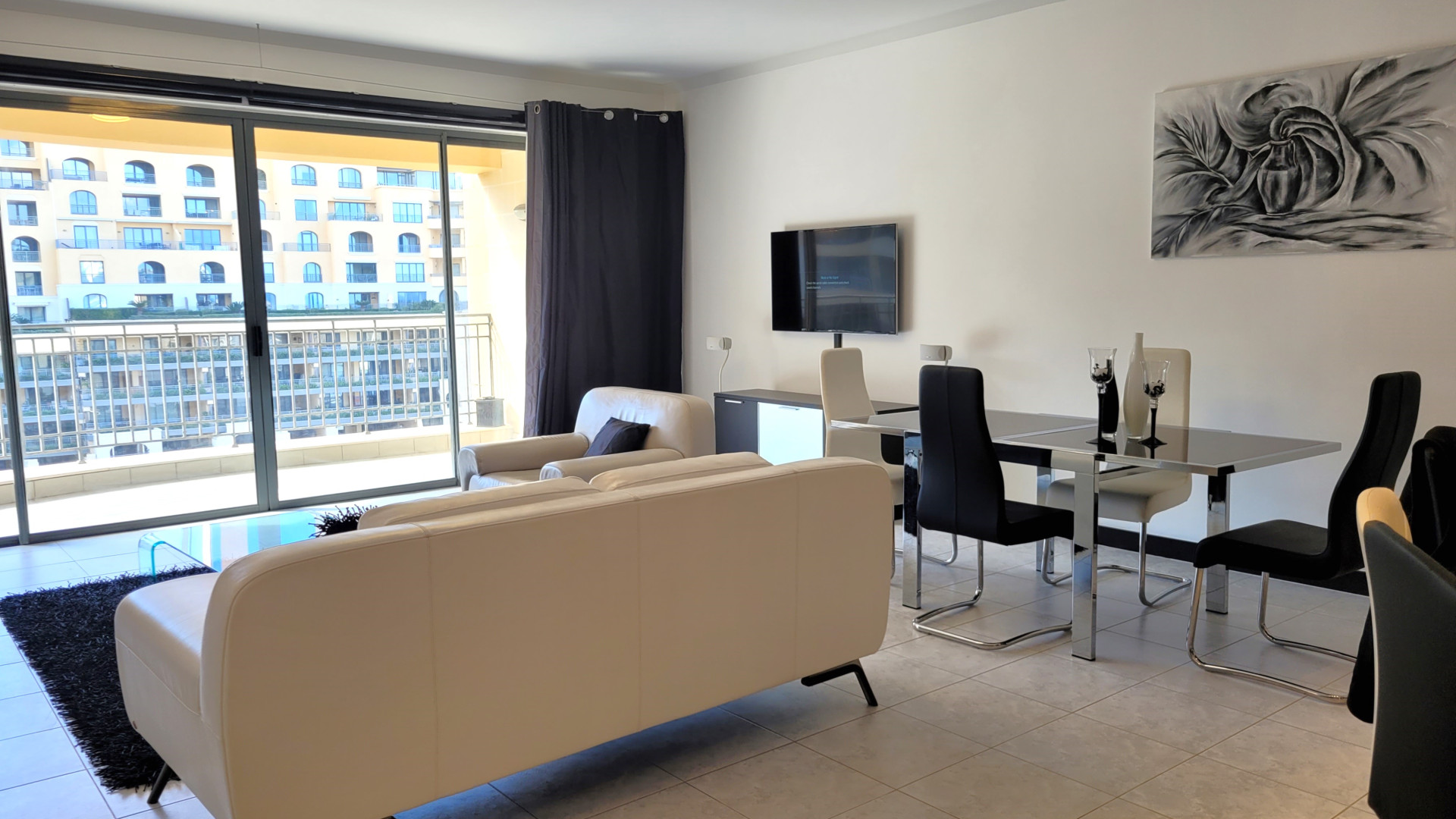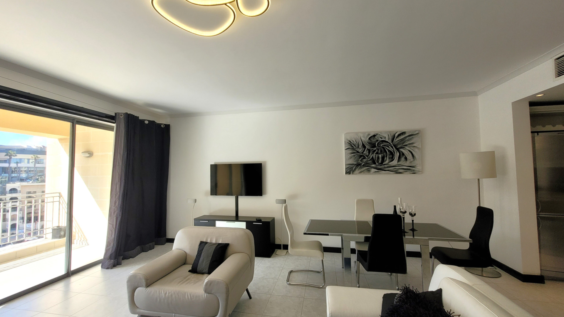 The apartment offers two generously sized double bedrooms, both with en suite facilities, along with a guest WC. Fully furnished and bathed in natural light, this home perfectly combines convenience with refined marina-side living.