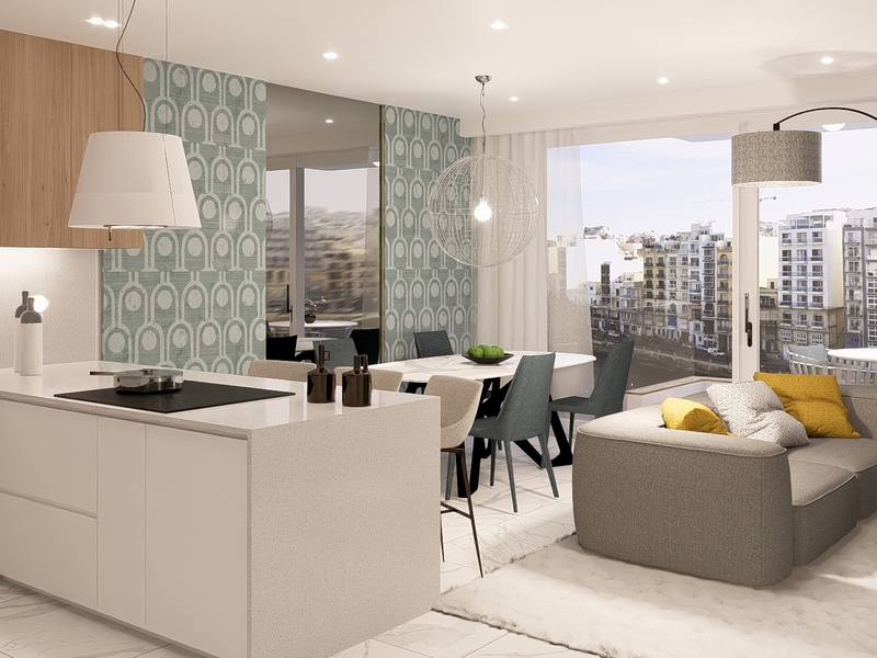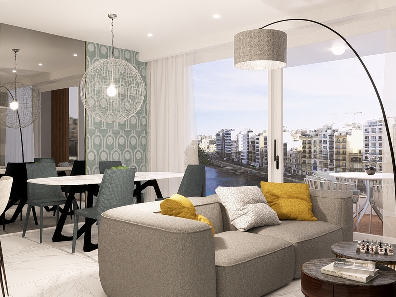 The property overlooks the lively picturesque bay, with unobstructed views stretching from Spinola to the Tower road promenade. The layout comprises an open plan kitchen, dining and living area, which leads out to a south facing terrace, enjoying the panoramic views and ideal for entertaining. The apartment is a two bedroom unit with one en-suite, one guest bathroom and an additional balcony. The property is being sold in an advanced shell form.
