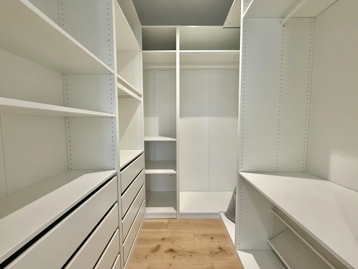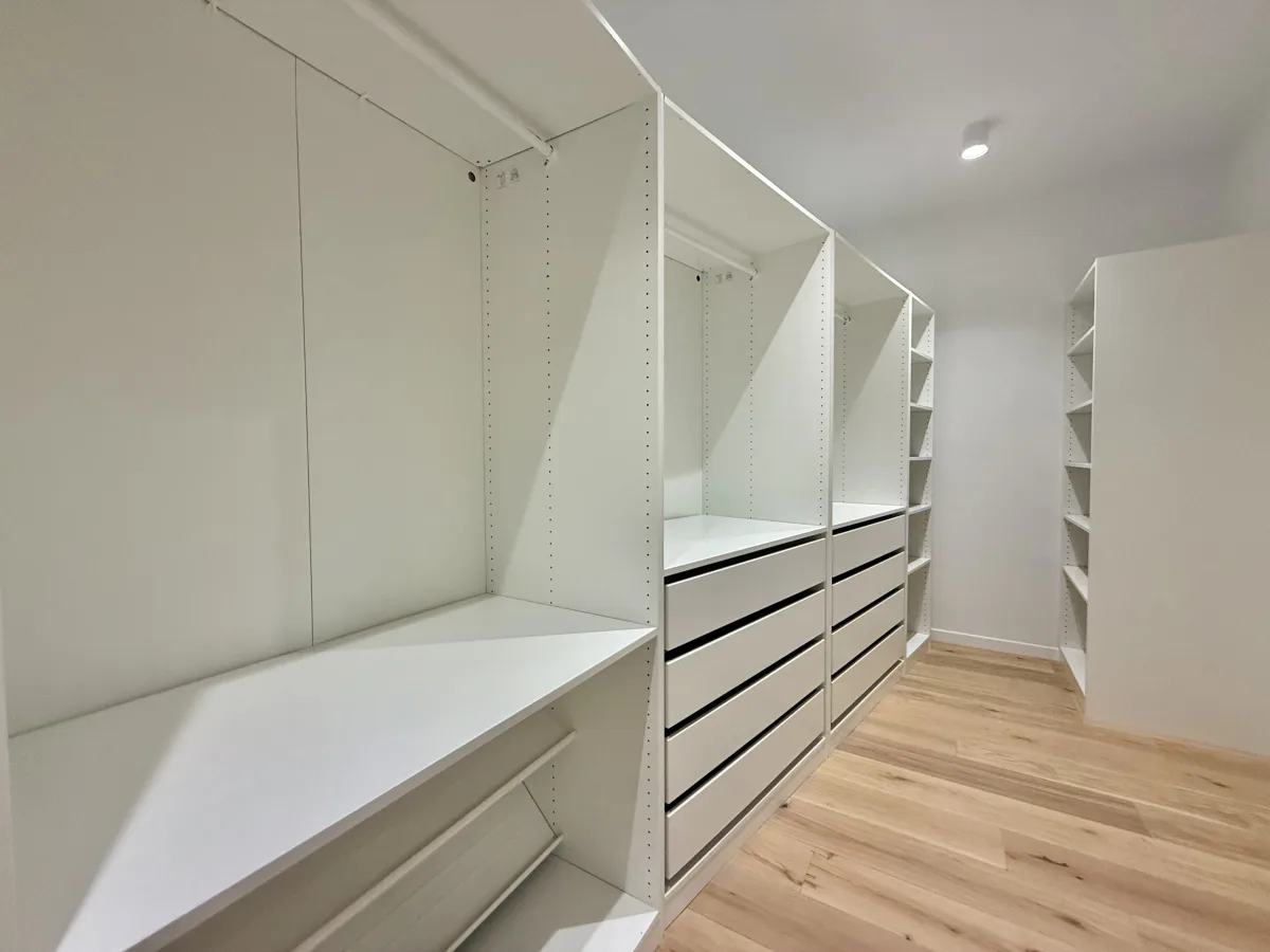 Descending to the lower floor, the apartment comprises two large double bedrooms, each complete with walk-in wardrobes and private en-suite bathrooms. The main bedroom enjoys its own sizeable terrace, offering a peaceful retreat with ample space to unwind. Additional features include a dedicated laundry room and abundant storage space, ensuring both practicality and ease of living.
