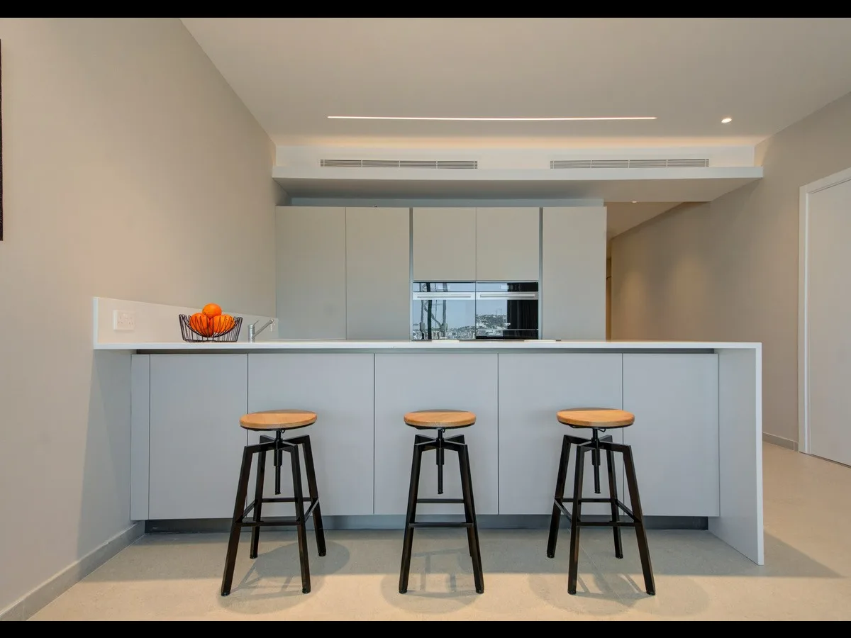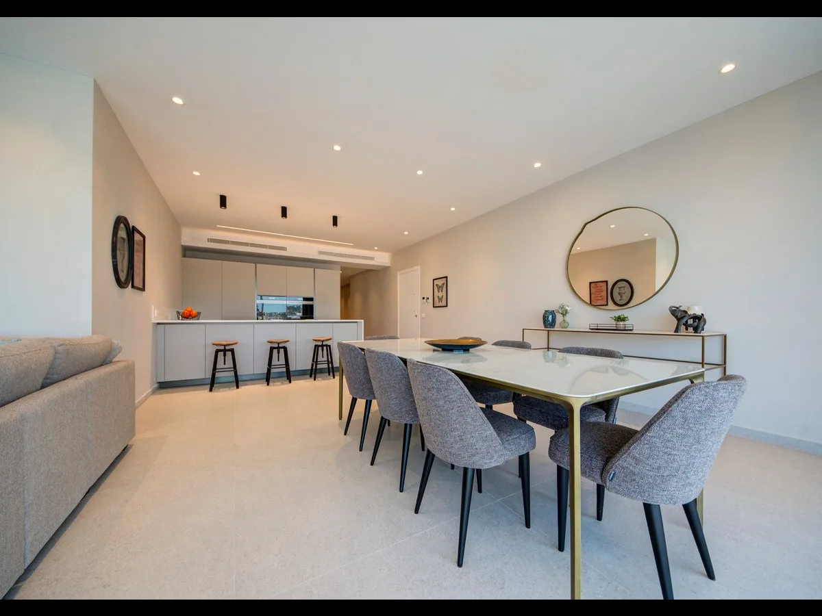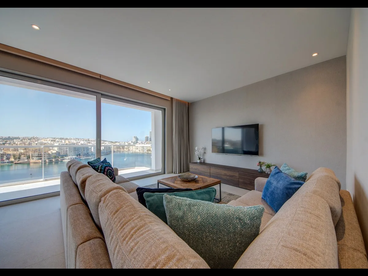 The apartment stands out for its meticulous finishing and high end furnishings, offering a spacious layout and abundant natural light. The apartment's layout is thoughtfully designed and features an open-concept kitchen, living, and dining area, seamlessly connected to a charming front terrace with lovely views of the bay. There are two generously sized double bedrooms, each having an en-suite bathroom.