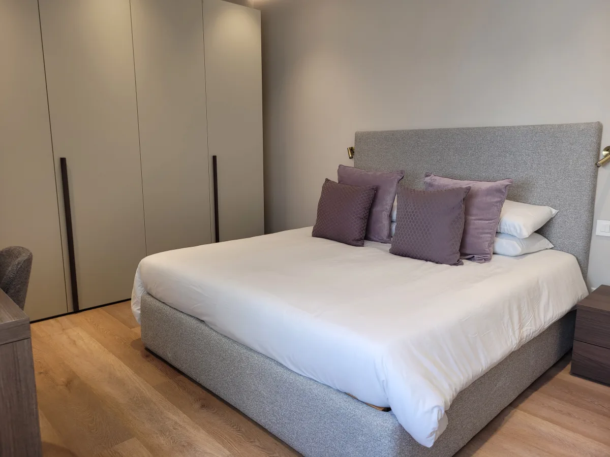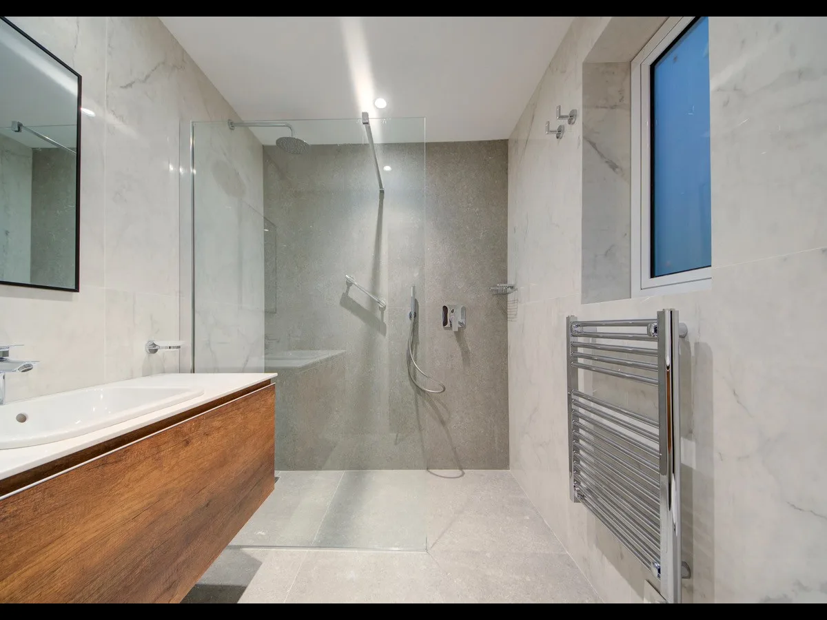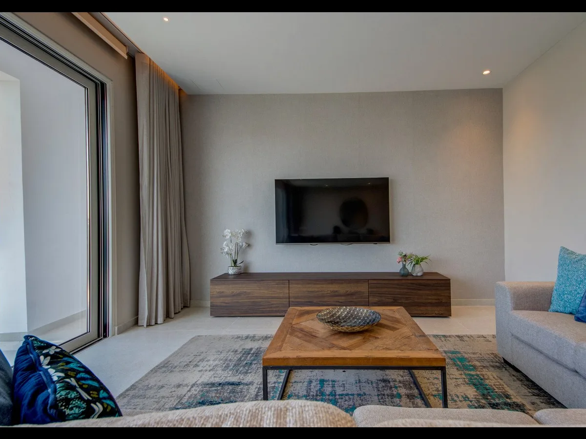 The apartment stands out for its meticulous finishing and high end furnishings, offering a spacious layout and abundant natural light. The apartment's layout is thoughtfully designed and features an open-concept kitchen, living, and dining area, seamlessly connected to a charming front terrace with lovely views of the bay. There are two generously sized double bedrooms, each having an en-suite bathroom.