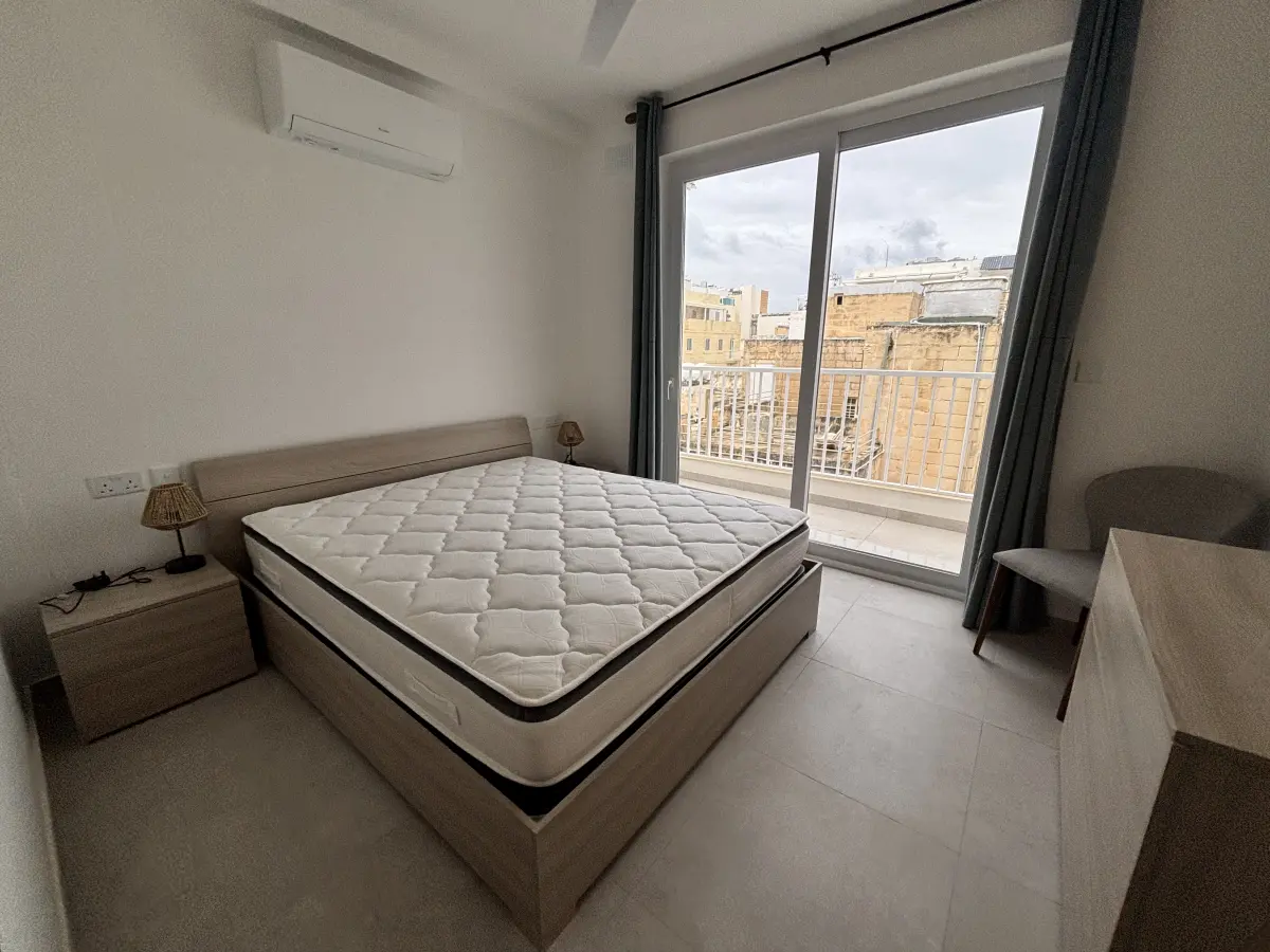 amenities. The property comprises a spacious kitchen, dining and living area, opening out onto a balcony, main bathroom and two bedrooms, one with en-suite facilities and a back balcony.