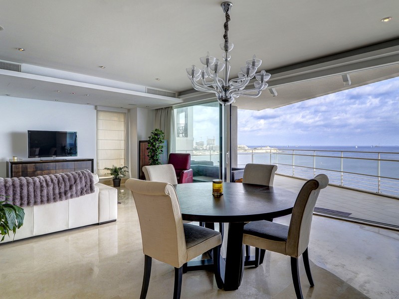 Each room has its own angled balcony, carefully designed to maximise natural light and capture side sea views throughout the day. Additional features include a washroom with washer and dryer, ample storage space, and an underlying garage, ensuring a seamless and luxurious living experience in the heart of Sliema’s seafront.