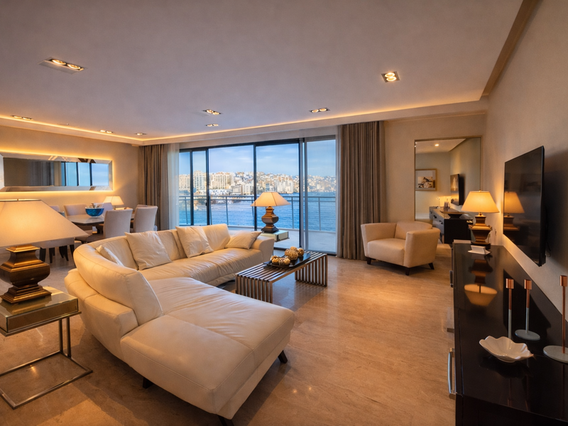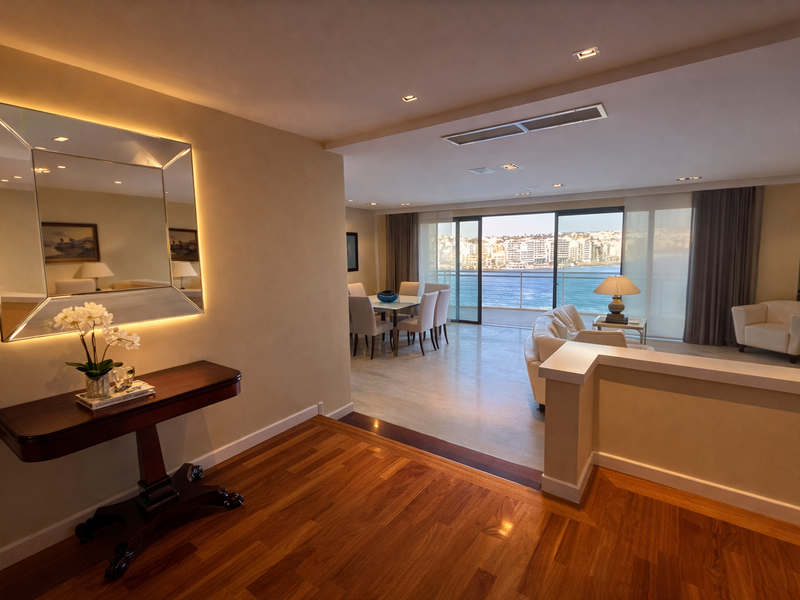 This bright and beautifully finished residence welcomes you with an inviting entrance hall, leading into a generous open-plan living and dining area that seamlessly extends onto a large front terrace, enjoying stunning, uninterrupted sea views, perfect for both relaxing and entertaining.