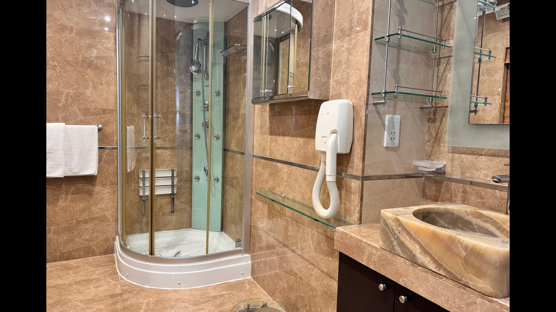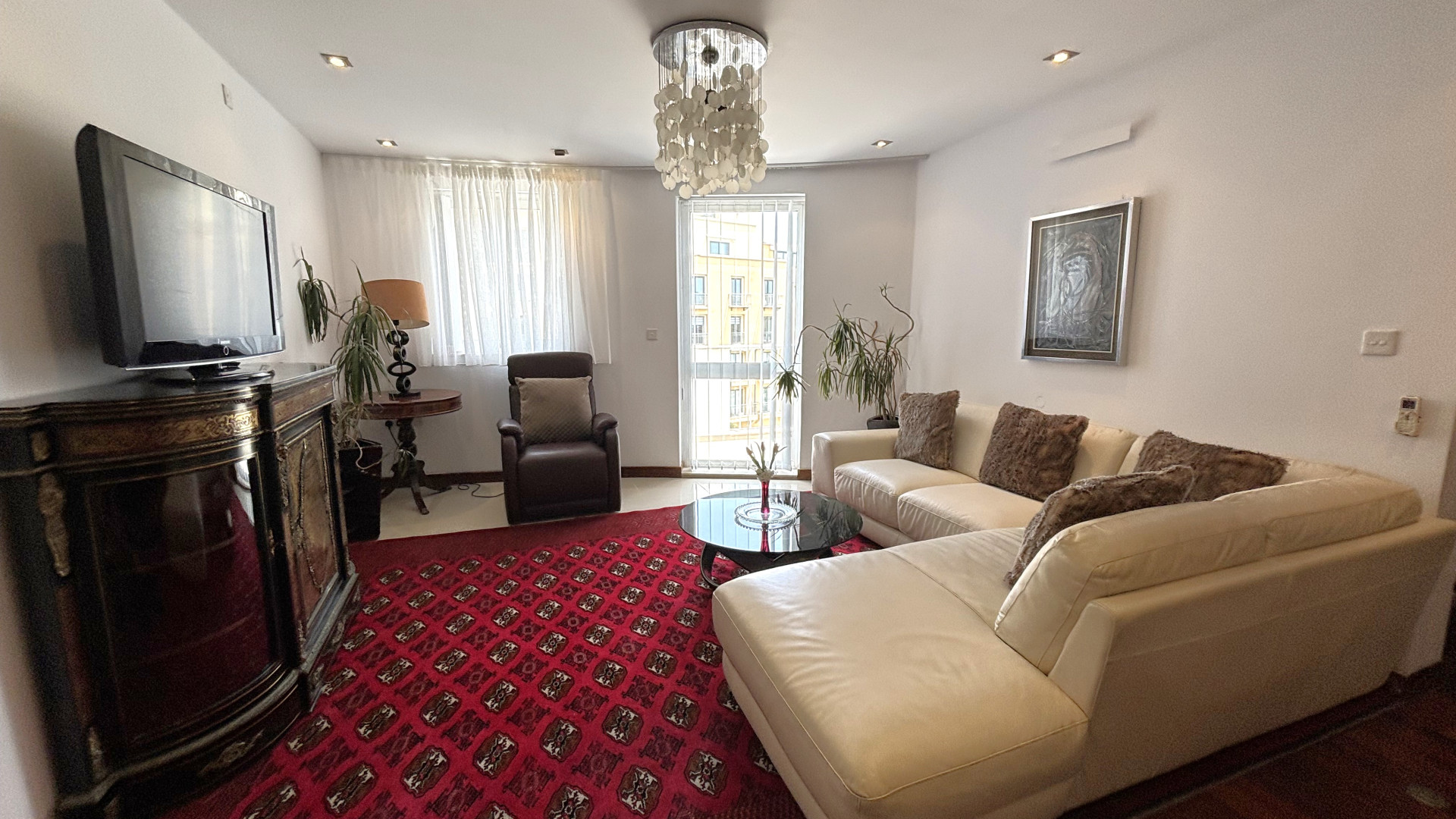 The apartment comes fully furnished with solid parquet flooring and is fully airconditioned for your comfort. The living, dining, and TV area feature a tasteful mix of authentic antiques, creating a unique and inviting atmosphere. The separate Italian Veneta Cucina kitchen is fully equipped with a dishwasher, fitted oven, hob, microwave, fridge freezer, cutlery, and crockery, making it a delight for any home chef.