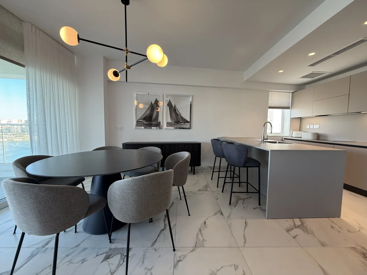 The apartment boasts a spacious and well-lit layout, with an open-plan kitchen, living, and dining area that seamlessly extends onto a sizeable front terrace—an ideal spot to relax and take in the stunning scenery. The accommodation includes two double bedrooms, with the master bedroom featuring an en-suite bathroom. A second bathroom, along with a convenient laundry and storage room, enhances the apartment’s practicality.