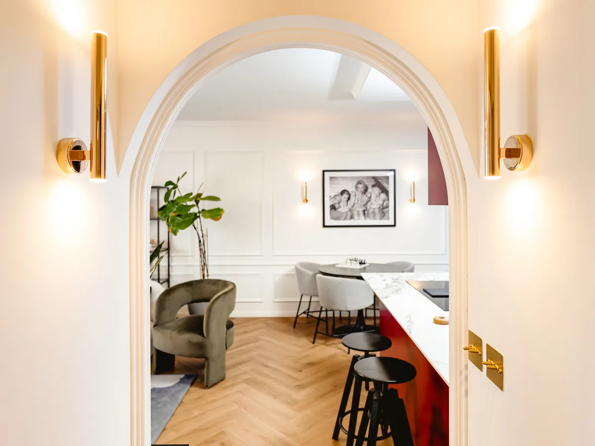 This brand new apartment in Ta' Xbiex features a modern open plan living, dining and kitchen area leading into a balcony, designed to the highest standards. The custom kitchen boasts a ceramic top and backsplash, complemented by wall moulding and vinyl wooden herringbone flooring throughout. The residence includes a family bathroom and two bedrooms, the master with en-suite facilities and a balcony.