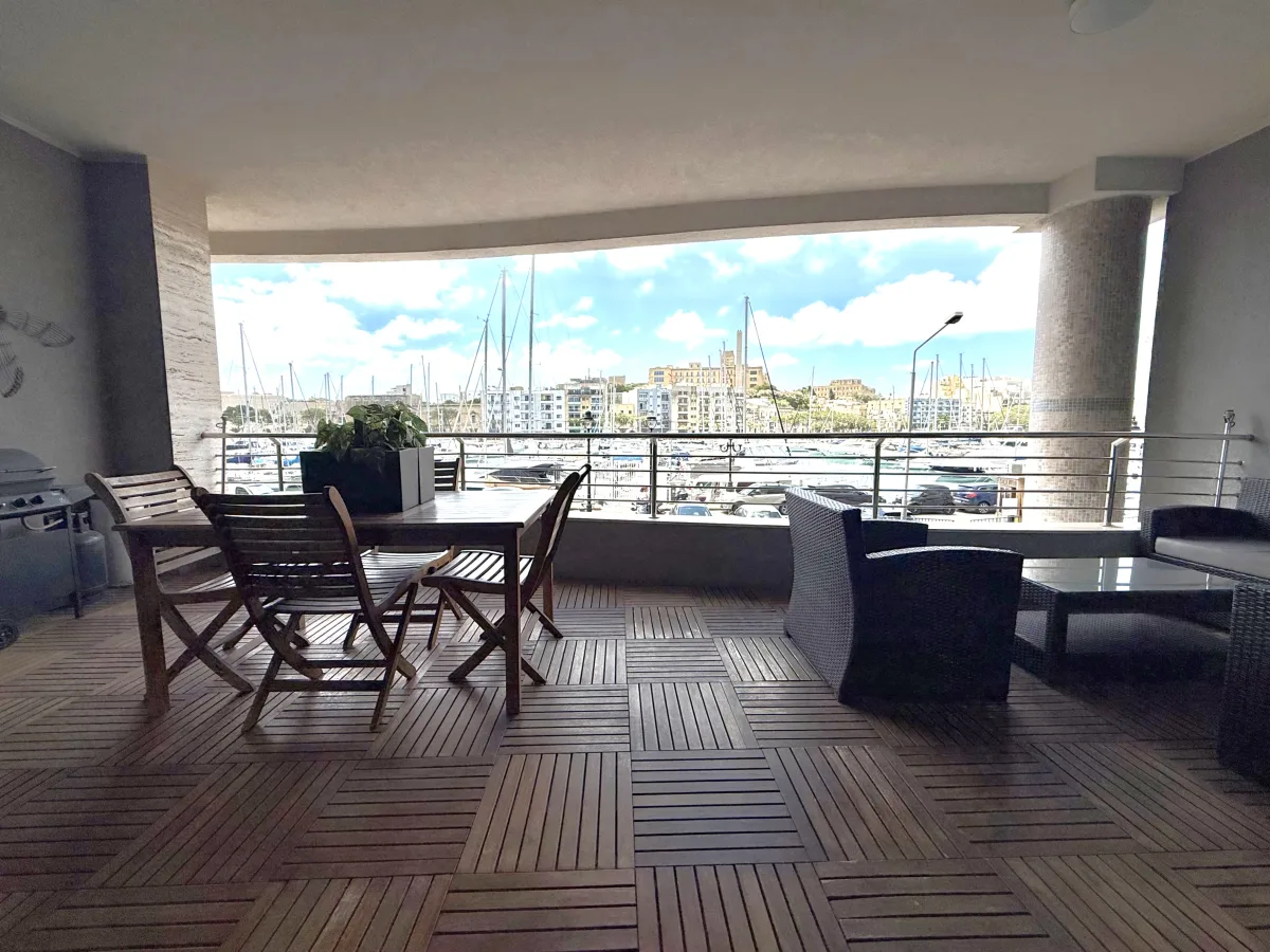 Upon entering, you're welcomed by an entrance hall, that leads onto a spacious open plan kitchen, living, and dining area. This central living space flows seamlessly onto a generous front terrace, where one can enjoy views of the underlying yacht marina, which sets a tranquil and inviting tone, perfect for relaxing or entertaining guests.