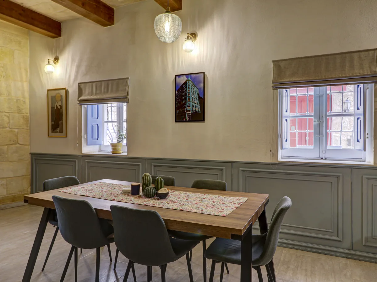 The property offers ample indoor and outdoor living areas and comes fully furnished with bespoke furniture and high-quality fittings throughout, following a state-of-the-art renovation. Retaining its authentic charm, it showcases period features such as original xorok limestone slabs, limestone bricks, wooden beams, and soaring ceilings—adding both character and a sense of Maltese heritage.