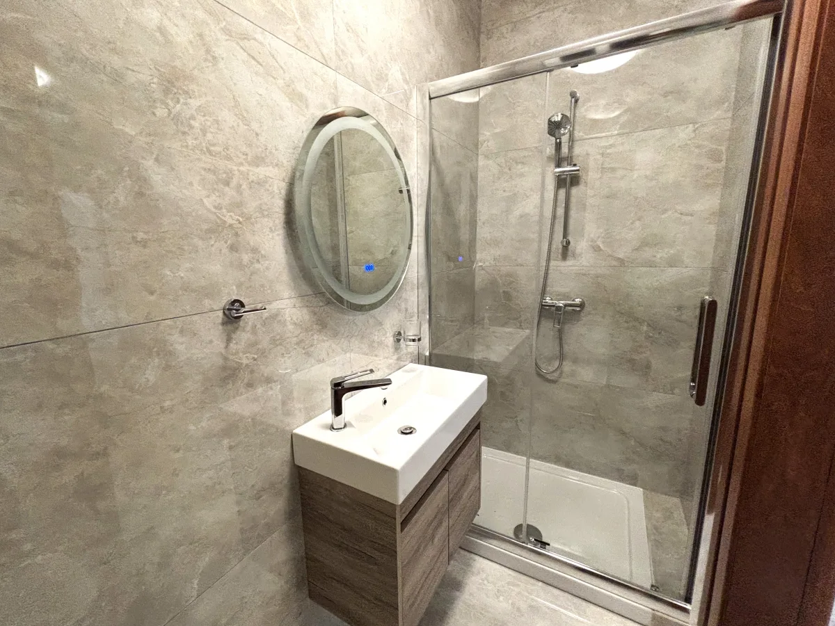The property features two well-sized bedrooms, including a master with a private en-suite, and a main bathroom. The open-plan layout is complemented by full air-conditioning, a washer and dryer and a dishwasher, ensuring modern convenience at every turn.