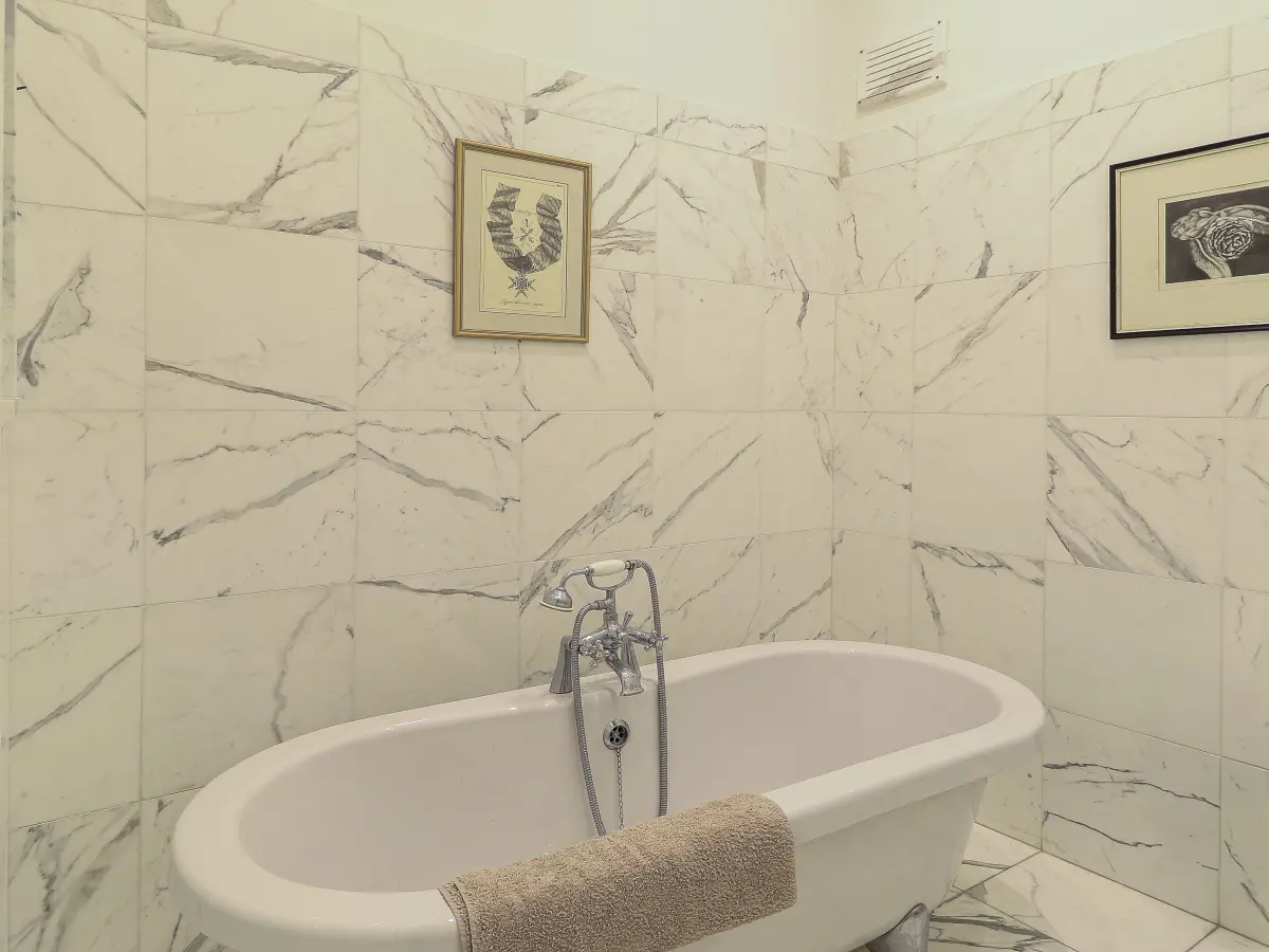 The residence offers two superbly appointed bedrooms, each complemented by luxurious en-suite bathrooms finished in exquisite Bianco Carrara marble, reflecting a meticulous attention to detail and uncompromising quality.