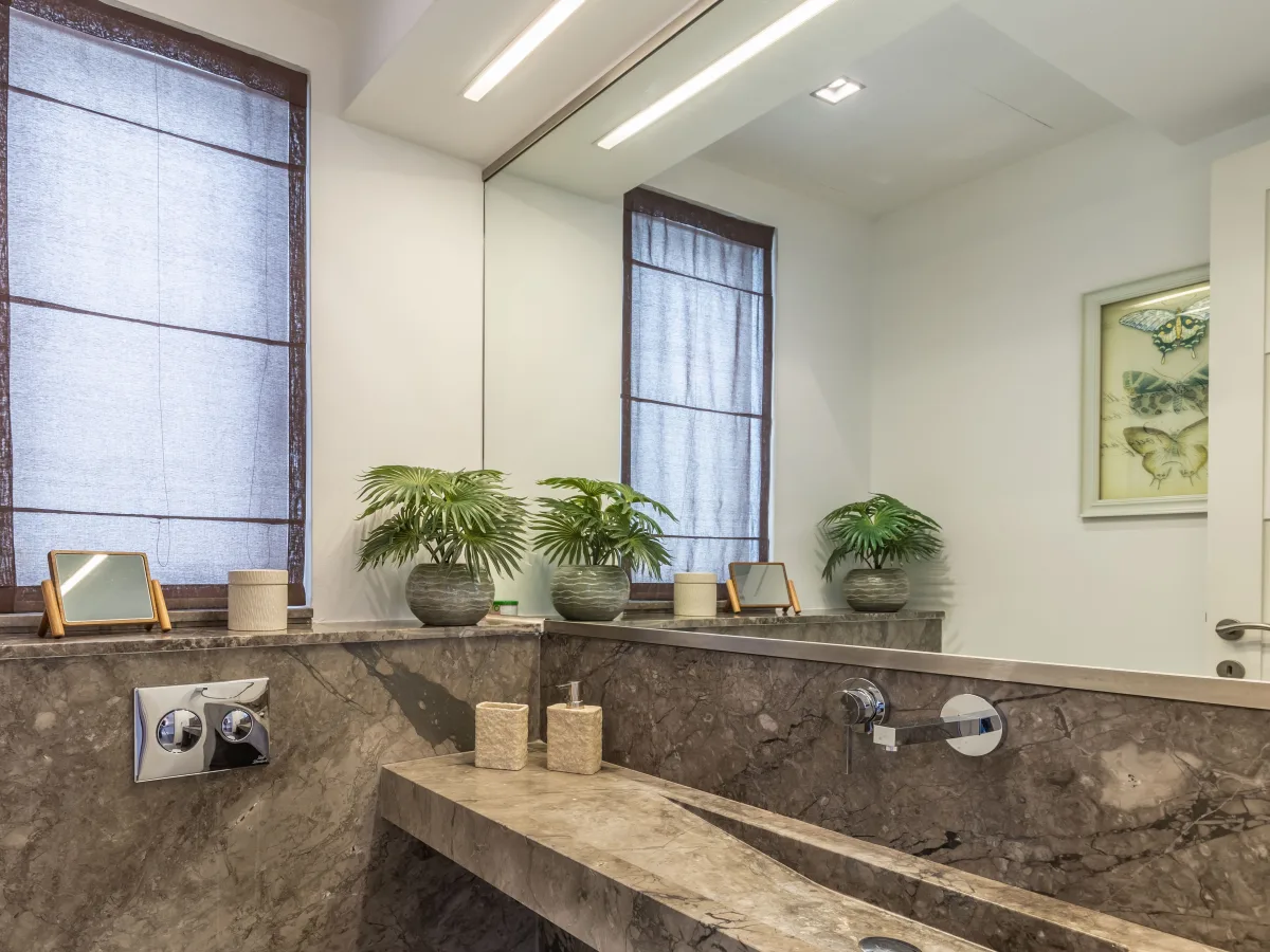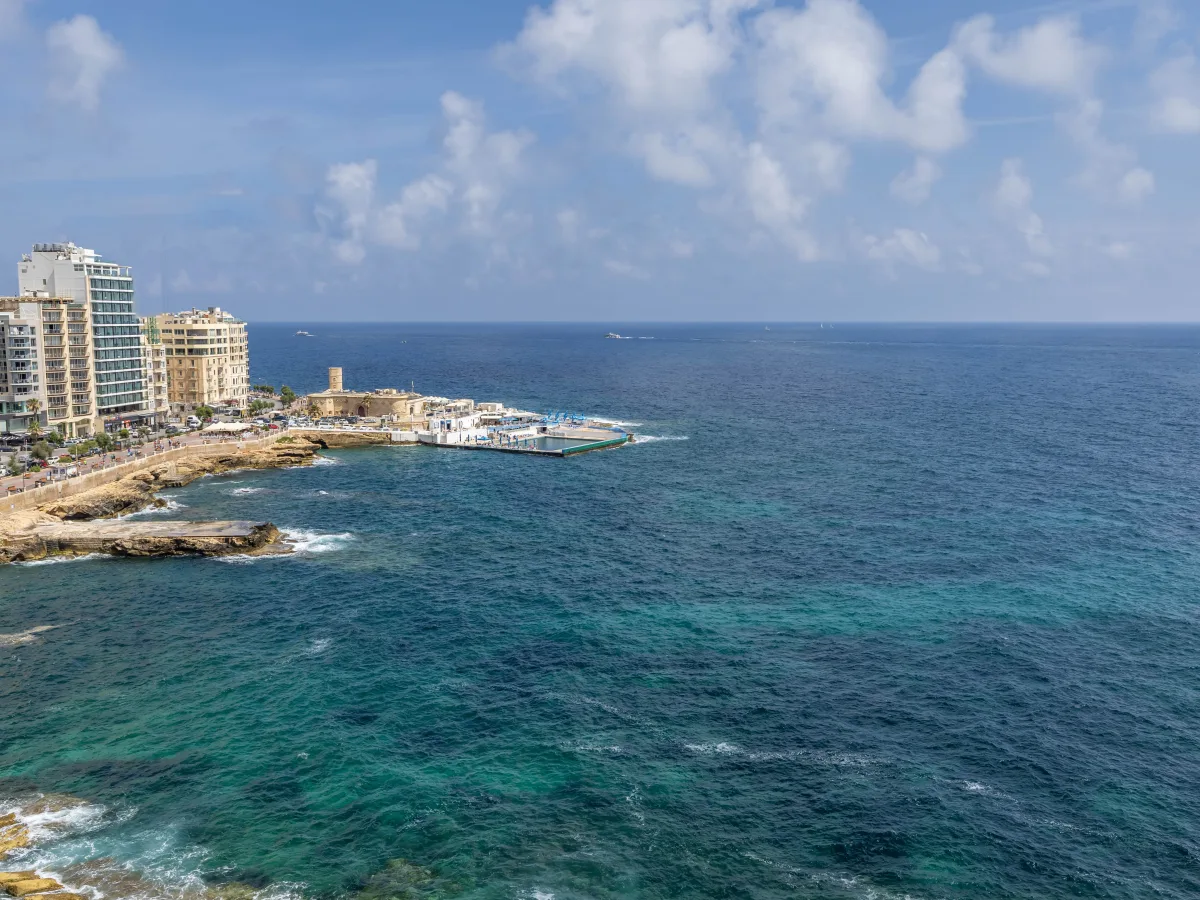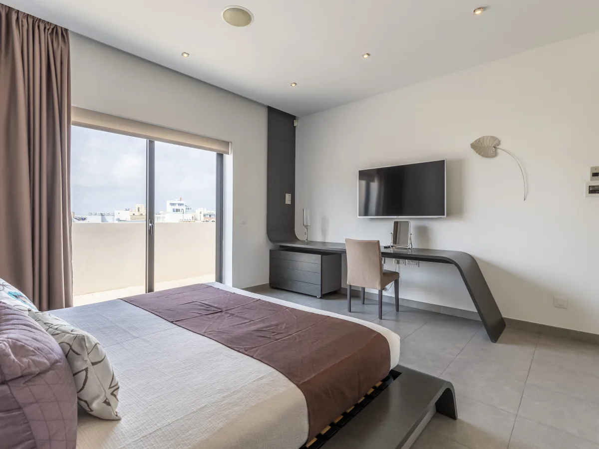 Set on 300 sqm, the property comprises a formal living room with a breathtaking panorama of the sparkling sea and immense blue sky, a very pleasant dining area, a cloak room, a guest toilet, a fitted kitchen equipped with built-in quality appliances, and plenty of work surfaces. The sleeping quarters can be divided with a sliding door, and consists of two double bedrooms both with en-suite, an impressive walk-in wardrobe with ample storage space and a well sized utility room.