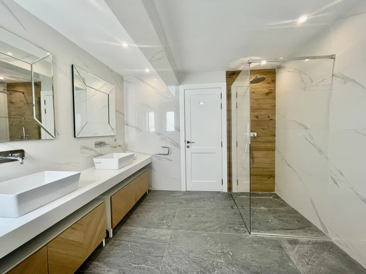 With two double bedrooms, each boasting en-suite facilities, the main bedroom also includes a walk-in wardrobe for added convenience. The penthouse is designed with practicality in mind, featuring a dedicated laundry, storage room and a guest cloakroom.