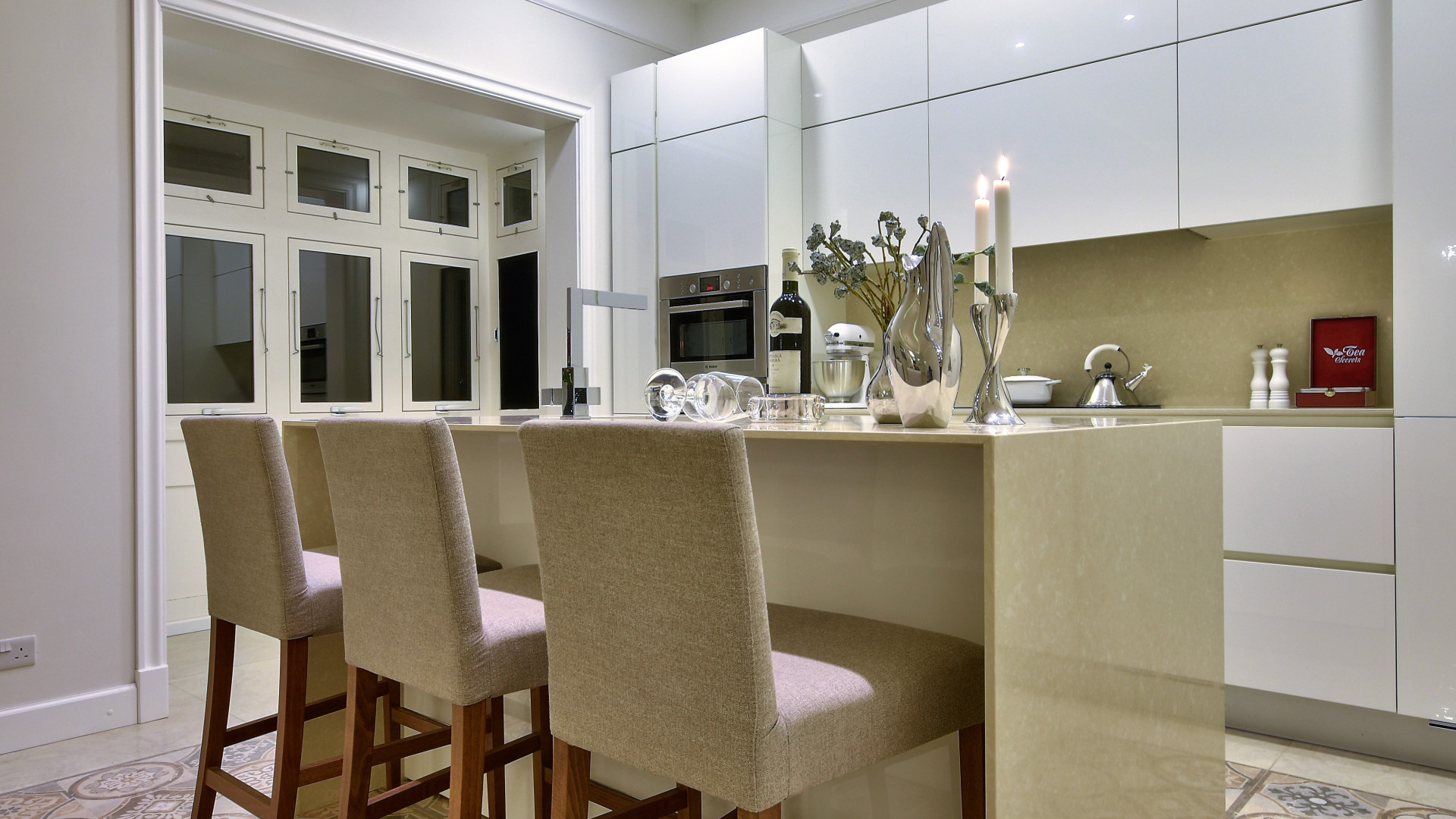 The thoughtfully designed layout begins with a welcoming hallway leading to a separate sitting room, which features a cozy fireplace and a traditional Maltese balcony, perfectly framing the breathtaking scenery. Adjacent to the sitting room is a contemporary, high-quality kitchen with a central island, wine cooler, and dining area.