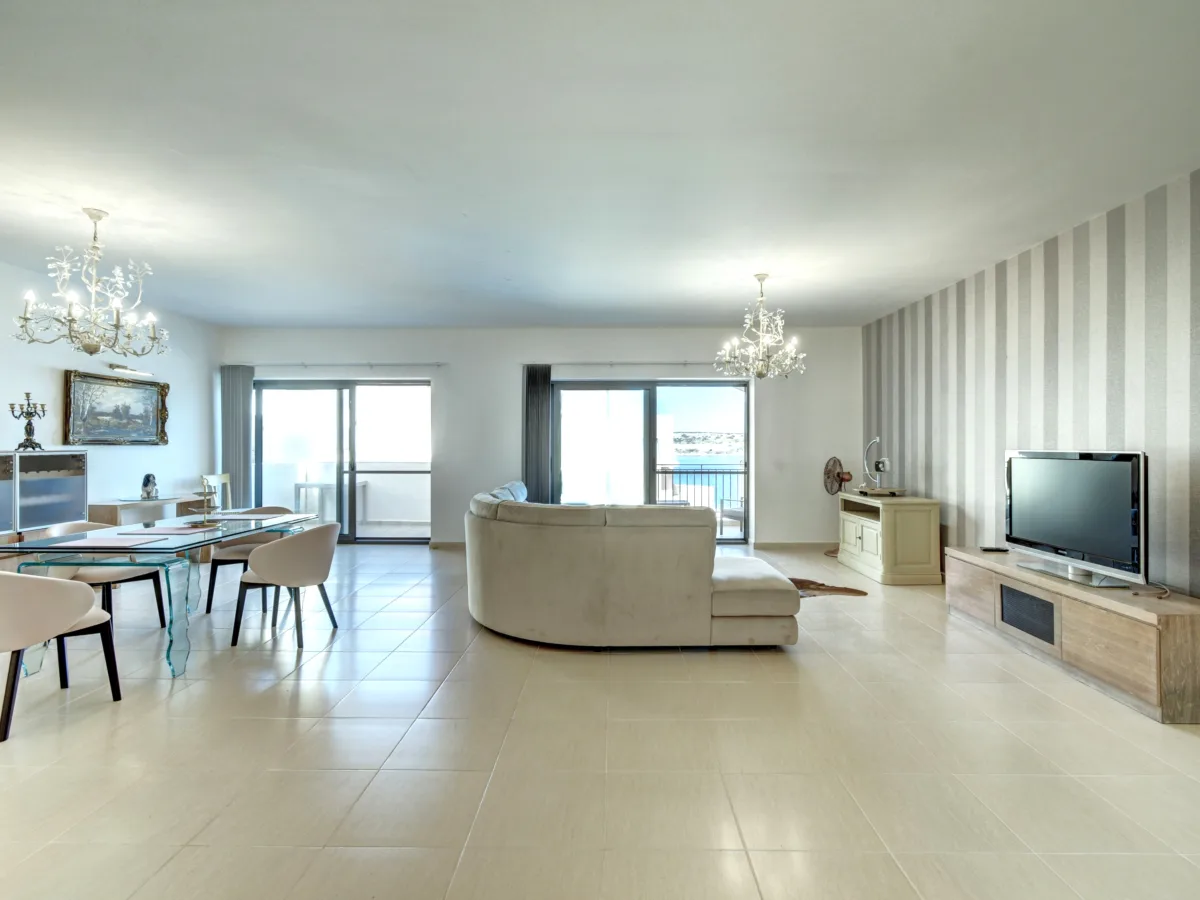 The layout features a generously sized living and dining area that opens onto a front terrace with stunning sea views. A brand new, state-of-the-art kitchen has its own entrance. Property enjoys the use of the large communal pool.