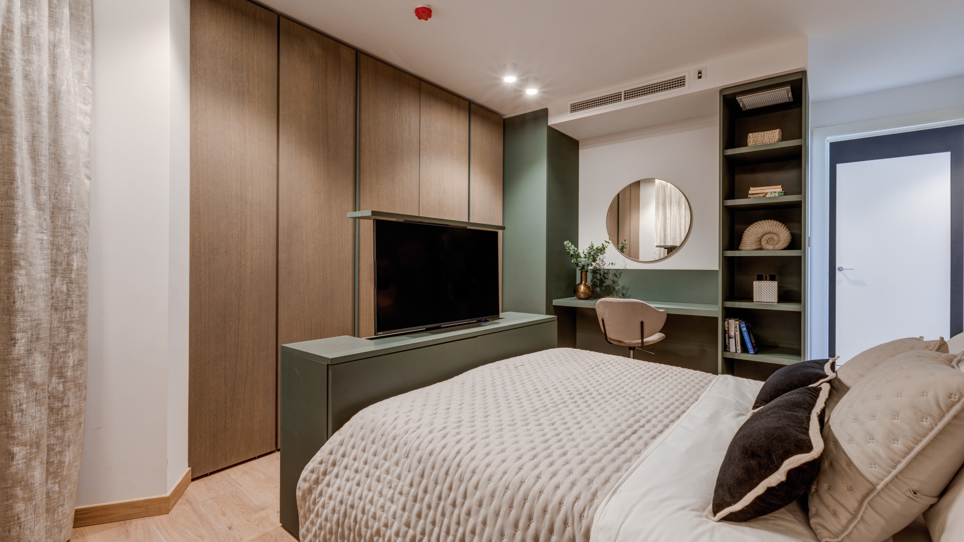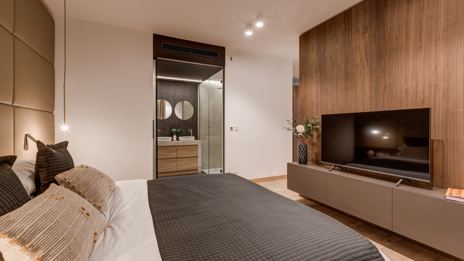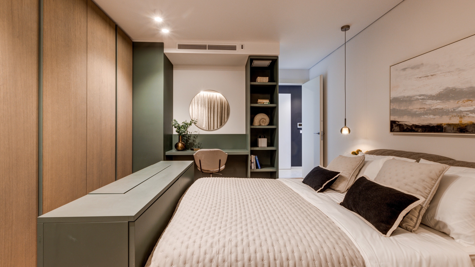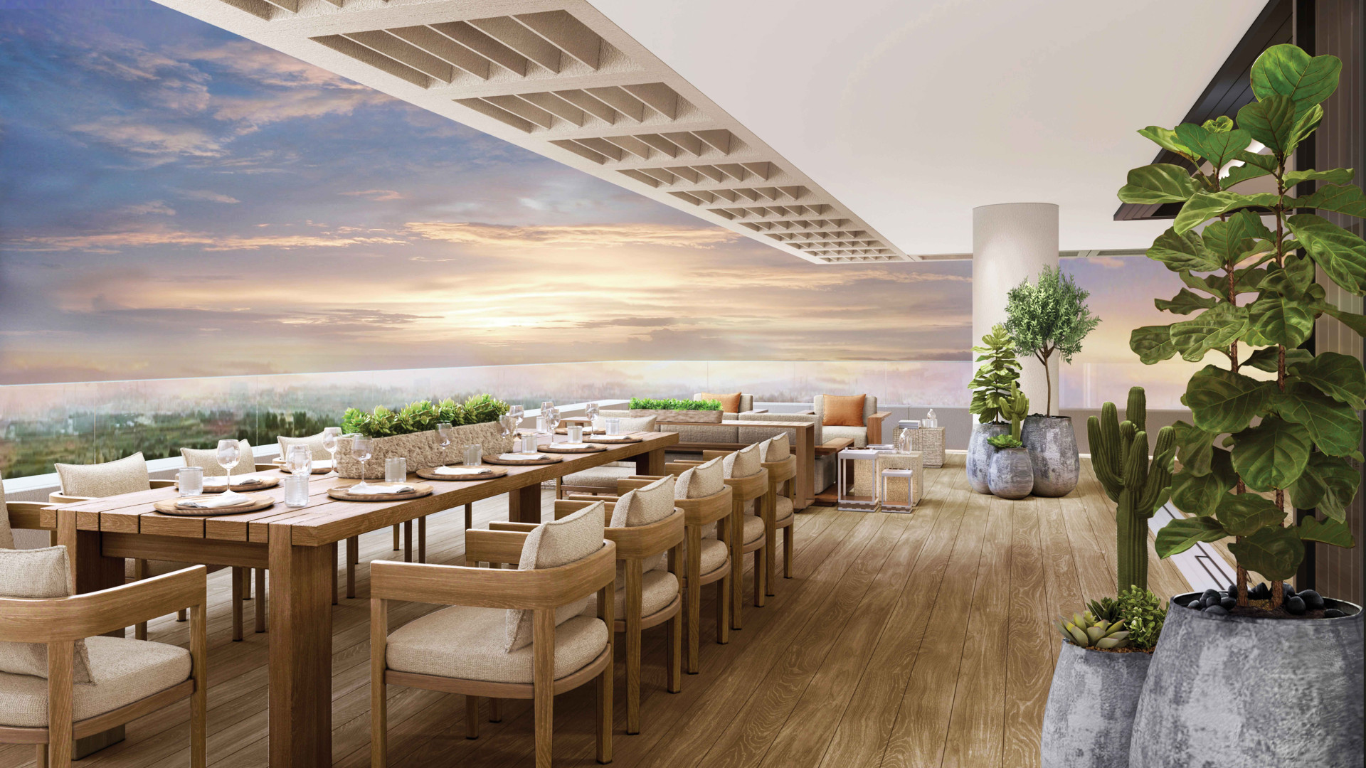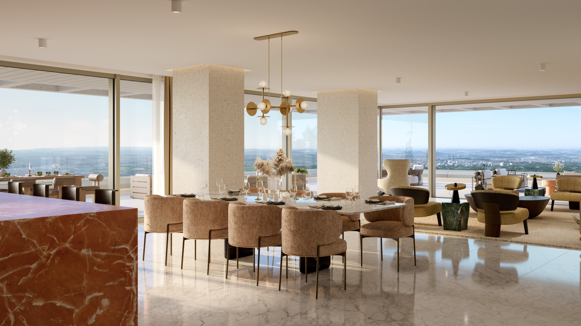 Boasting with natural light, this highly finished corner property comprises an open plan living area, main bathroom, washroom, study area and three double bedrooms, all with en-suite facilities. The main attraction of this lovely residence is a wrap around terrace having access from the living area and all bedrooms. A perfect spot to unwind, dine and entertain whilst enjoying the panoramic view.