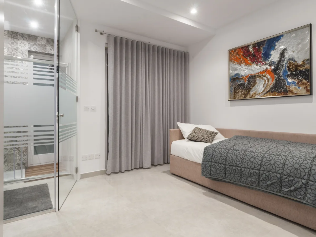 The living area seamlessly combines an open plan kitchen, living, and dining area that flows onto a beautiful terrace offering breathtaking views of Valletta Harbour. The apartment is outfitted with state-of-the-art appliances and is fully airconditioned.