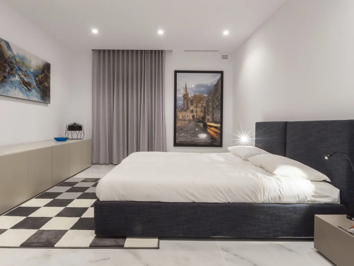 This spacious apartment sits elegantly along Sliema Strand, showcasing a modern design curated by one of Malta's premier interior designers. The living area seamlessly combines an open-plan kitchen, living, and dining space that flows onto a beautiful terrace offering breathtaking views of Valletta Harbour. The apartment is outfitted with state-of-the-art appliances and is fully airconditioned.