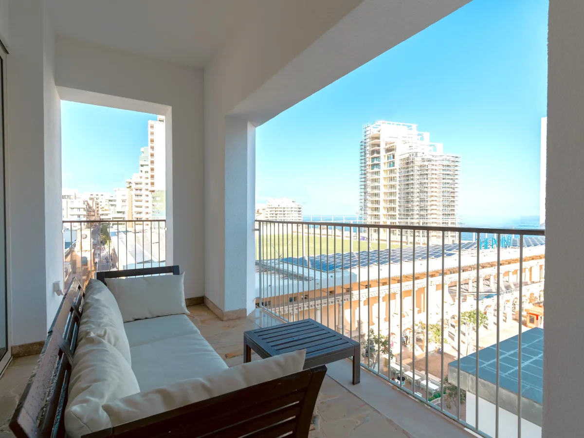 The property comprises of a spacious hallway that opens up into a combined open plan living, dining and kitchen area and featuring a good sized balcony leading from the kitchen, where one can enjoy the views of Manoel Island. Being a corner apartment, one can view the Tigne Point piazza from all three bedrooms, especially from the additional well sized back balcony off the main bedroom. The main bedroom also has en-suite facilities , in addition to the main bathroom in the hallway. There are also two utility rooms at ones disposal.