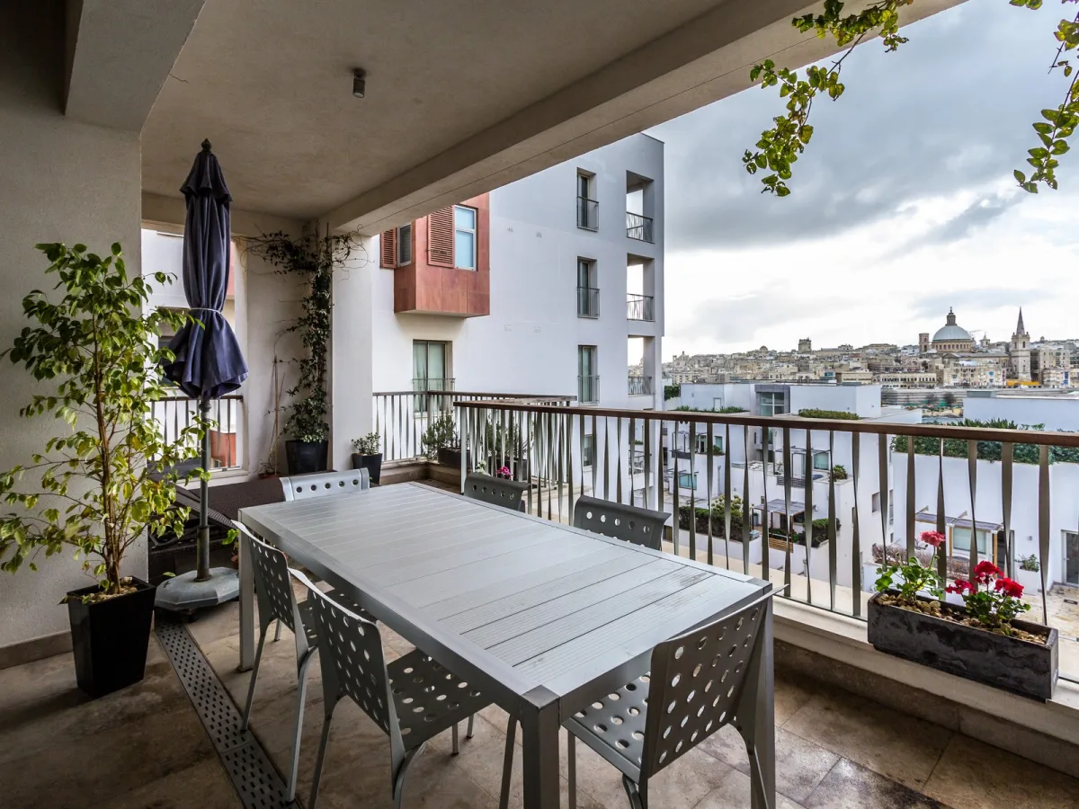 The property includes three double bedrooms, including a master suite with a modern shower en-suite, a main bathroom, guest WC, utility room, box room, and a back balcony overlooking the vibrant Piazza. Bathed in natural light, the apartment is fully airconditioned and equipped with an integrated sound system throughout. A front terrace offers picturesque views of Valletta, perfect for entertaining or relaxing.