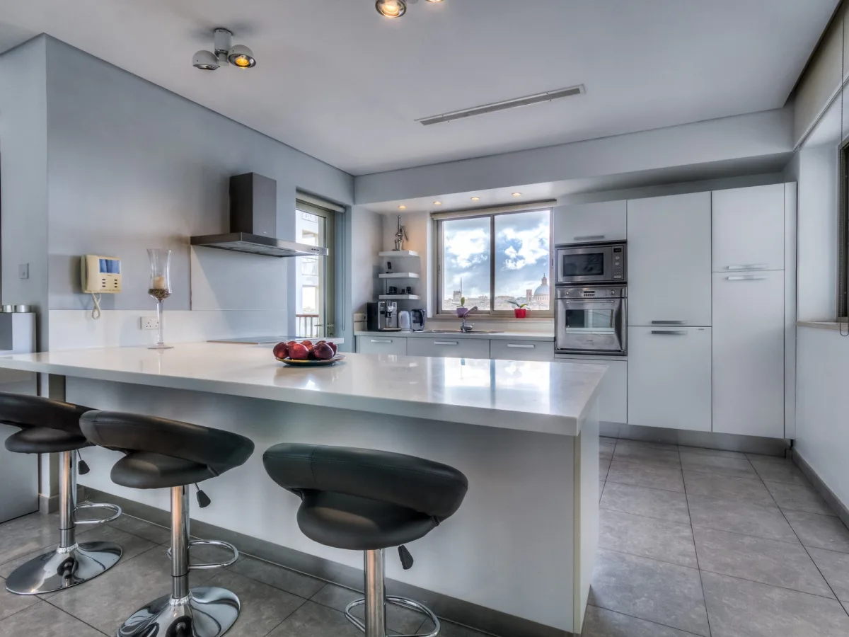 This exceptional high floor apartment combines elegance and comfort within the prestigious Tigné Point complex. Boasting approximately 226 sqm of living space, the residence features an inviting entrance hall leading to a generous open-plan kitchen, dining, and living area, all opening onto a wide frontage with stunning views of Valletta.