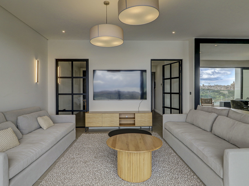 The sleeping accommodation is equally impressive, comprising three spacious double bedrooms, each designed with comfort and sophistication in mind. The master suite is a true haven, complimented with a luxurious en-suite bathroom. A second bedroom with its own walk in closet and an additional bedroom opens onto a serene rear terrace overlooking beautifully landscaped gardens - simply perfect for quiet moments of relaxation. A guest bathroom serves the two bedrooms.