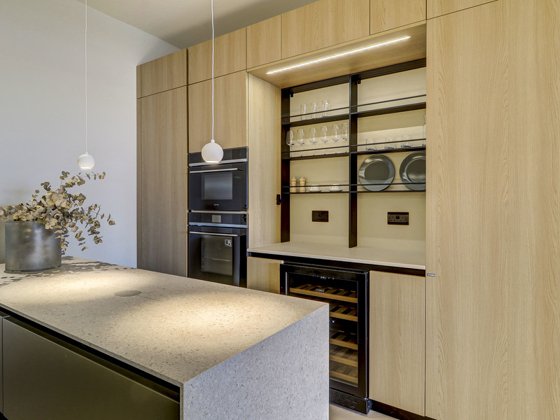 The separate kitchen is a chef’s sanctuary, impeccably equipped and thoughtfully designed, complete with a generous larder that enhances both functionality and storage.