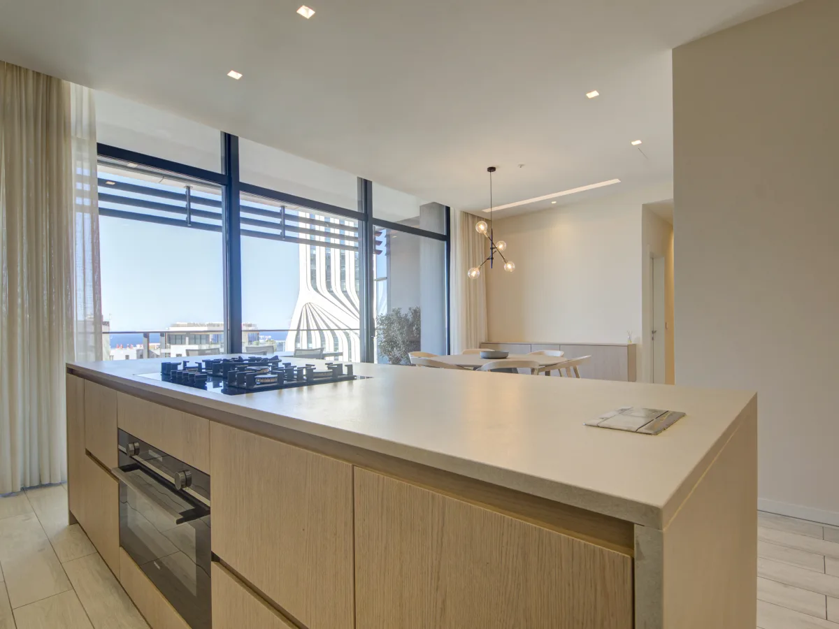 Property features three double bedrooms, including a luxurious primary suite with walk-in wardrobe and en-suite. The apartment offers 160sqm of internal living space and 35sqm of private terraces. Soaring 10-foot-high ceilings and recessed LED lighting throughout enhance the open and airy feel. The thoughtfully designed Minimalist-Mediterranean interiors are finished to the highest standard. The home is fully furnished with designer pieces including a Molteni dining table, Musa sofa, and a The Cut Italian kitchen. High-performance Siemens A++ appliances, Daikin air-conditioning, and underfloor heating in all bathrooms merging uncompromising infrastructure with modern luxury and design. Complementing this property is an A rated Energy Performance Certificate.