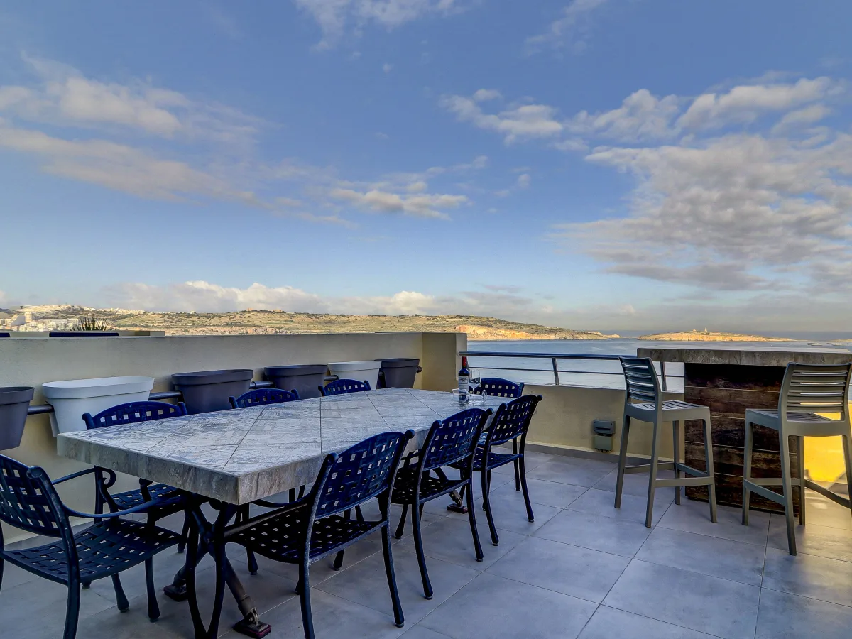 Step inside to a warm and inviting entrance that flows seamlessly into a sophisticated living and dining space, an elegant environment that naturally extends toward a spectacular seafront terrace. Here, the stunning panorama becomes part of daily life: breathtaking sunsets, golden reflections across the water, and the tranquil rhythm of the sea through every season. Designed for both relaxation and entertainment, this terrace features dedicated lounging and dining zones, a sheltered area ideal for cooler evenings, a lovely fire pit, a barbecue station, and built-in wine coolers for effortless hosting. The separate, fully equipped kitchen is bright, airy, and intelligently laid out, enjoying direct views across the dining area to the glittering seascape beyond.