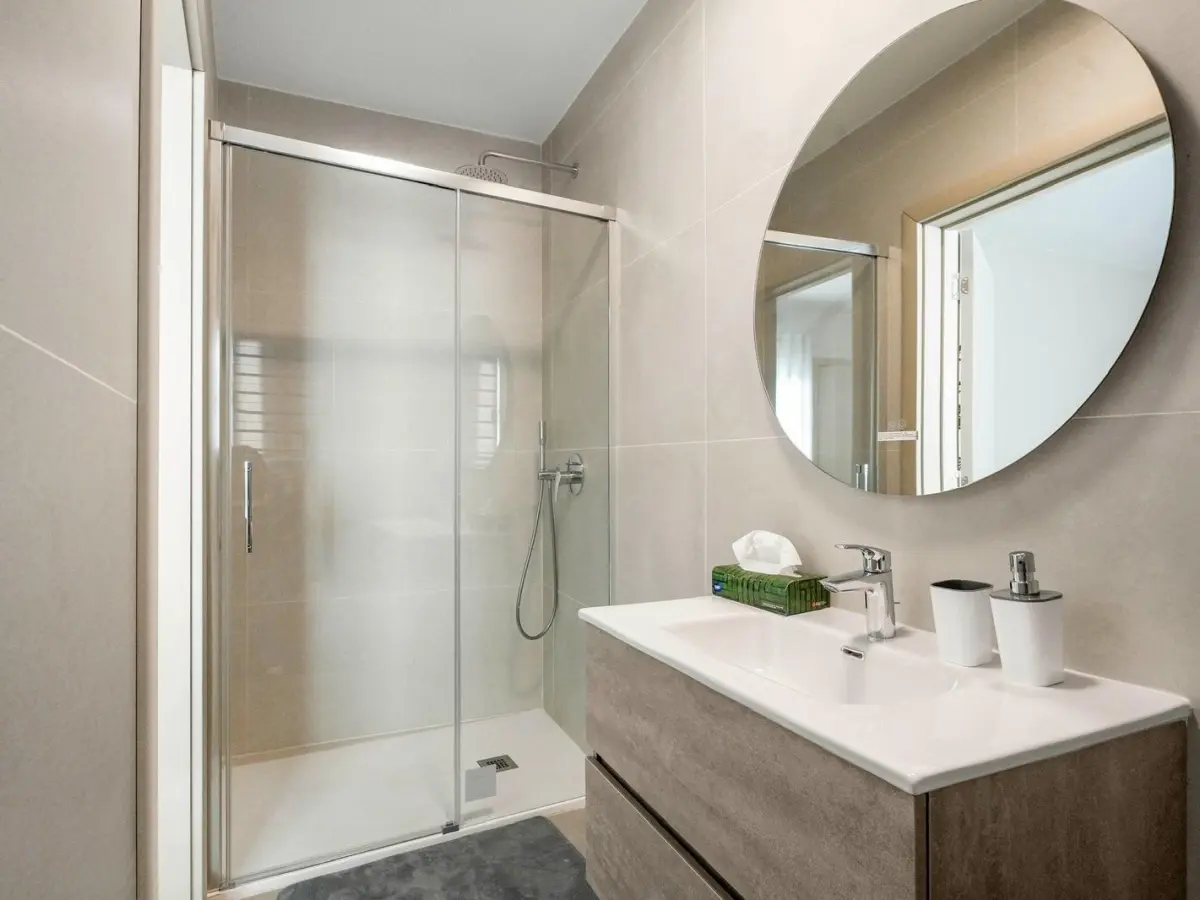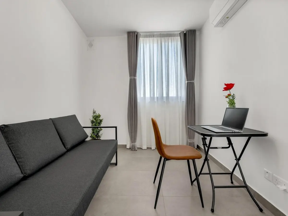 The apartment comprises two generous double bedrooms and a versatile third room that may be used as a study, home office, or additional bedroom, all served by two contemporary bathrooms. A lovely front terrace provides the perfect setting for entertaining family and guests.
