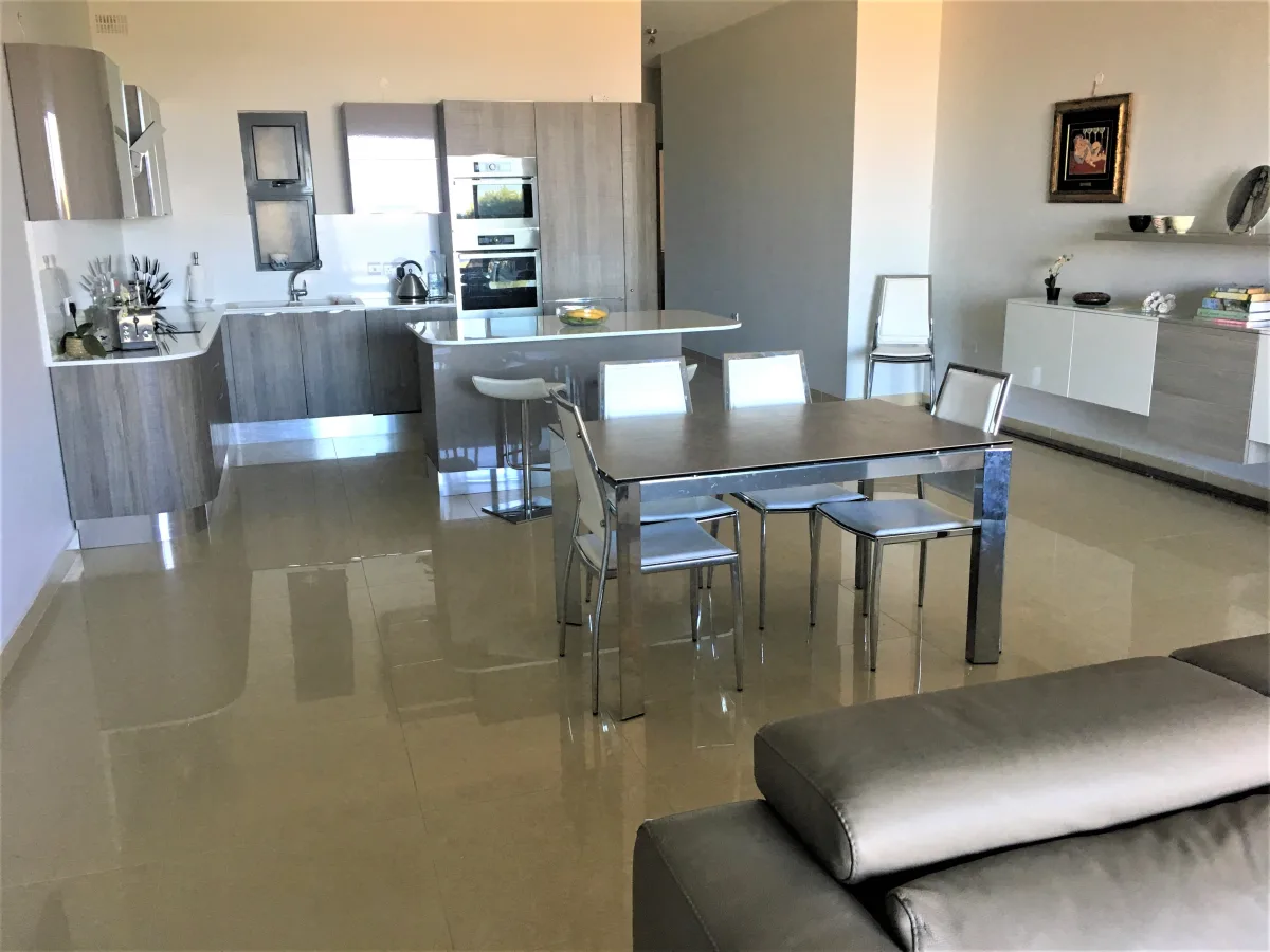 This residence boasts three bedrooms, of which the master also having en-suite facilities, complemented by a thoughtfully designed open concept living space merging the lounge, dining, and state of the art kitchen featuring modern amenities such as a dishwasher. Further, it is finished with two air-conditioning units, a lock-up garage, and laundry facilities. The expansive terrace showcases the bay's allure, while two additional balconies provide glimpses of the sea beyond.