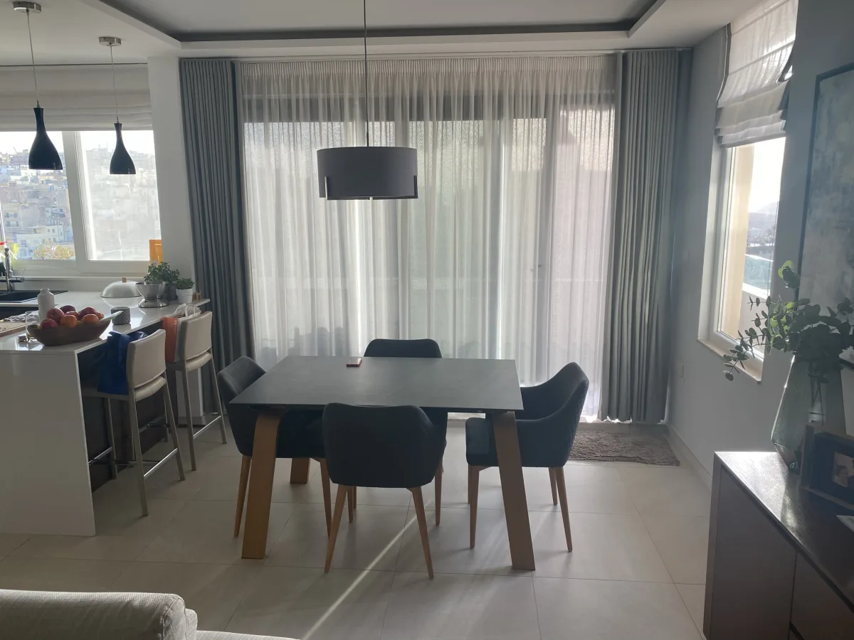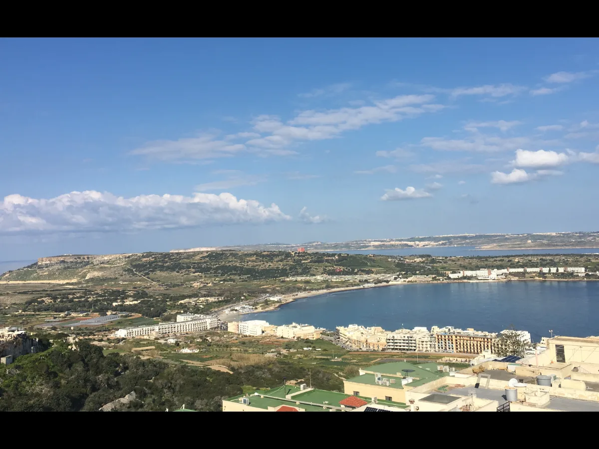 The apartment boasts a front terrace with breathtaking views of Għadira Bay, Comino, Gozo, and Mellieha’s Church and Parish Square, complete with a dining table, and chairs, ideal for outdoor living. The 30 sqm back terrace ,with a small storage room, accessible through the washroom, provides comfort and practicality.