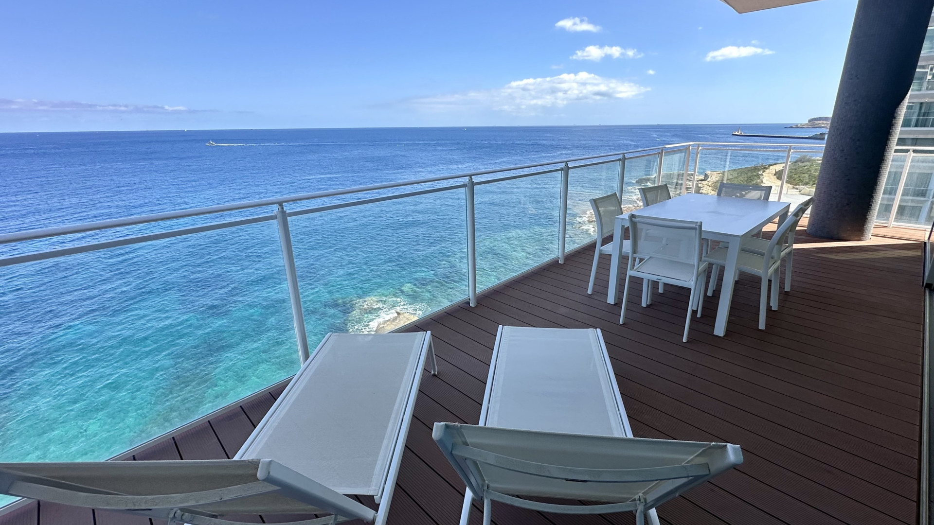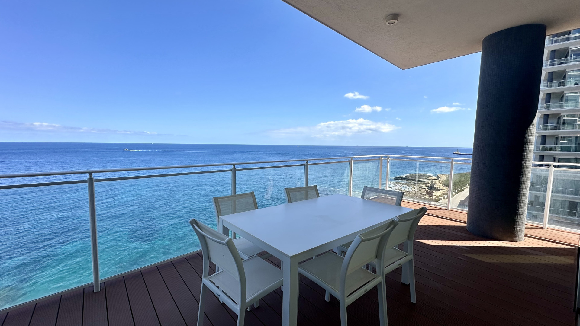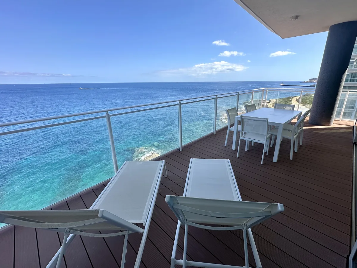 Situated on the fourth level, one is welcomed through an entrance hallway which opens up onto a spacious fully equipped kitchen, living dining room with floor to ceiling apertures giving one the feeling of being out at sea. This spacious front room leads out onto a 41sqm terrace overlooking the stunning waters of the Mediterranean Sea, which undoubtedly offer a spectacle of movement with the many yachts and cruisers passing by. Further complimenting this property are three double bedrooms with the master bedroom having ensuite facilities, together with a family bathroom, a dedicated laundry space, guest toilet and an interconnected car space.