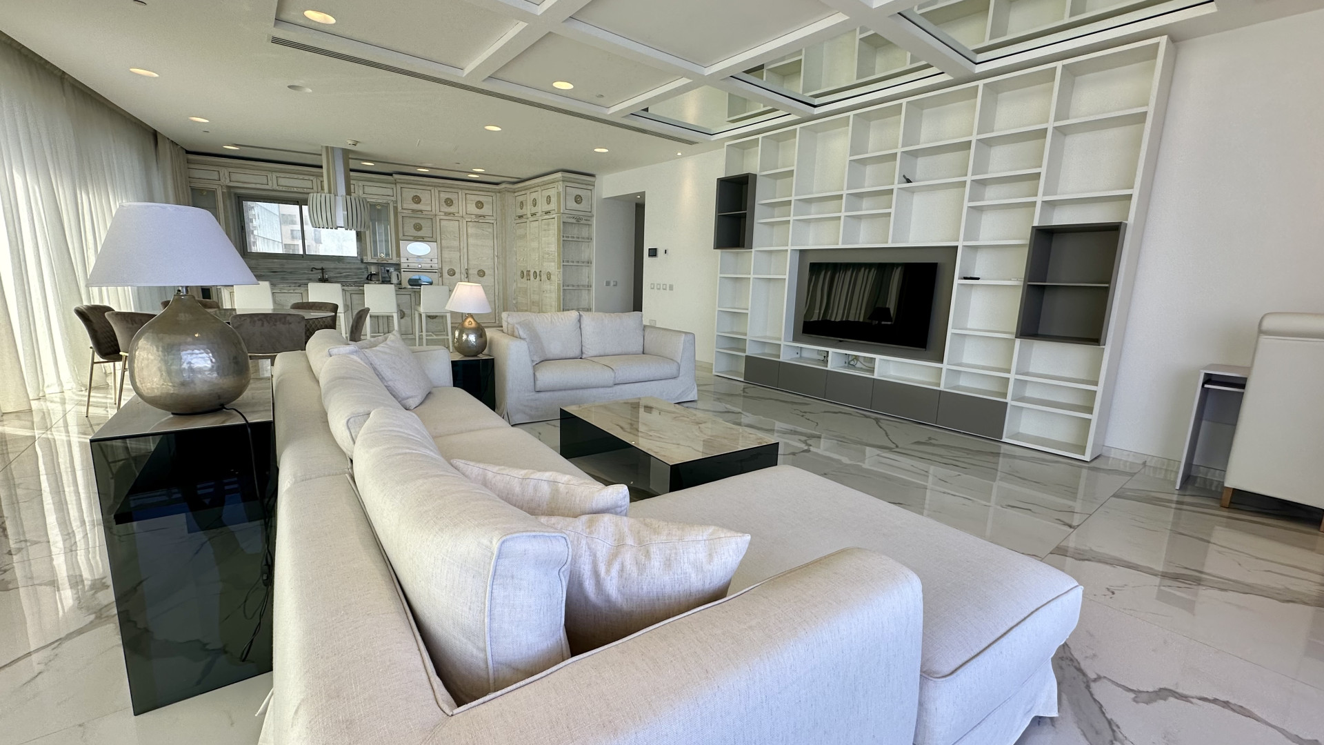 With amenities including 24/7 security services, a communal swimming pool, gym, cafes, restaurants, and designer shops together with a shopping mall within the Development's grounds, this designer furnished apartment is located in one of the newest blocks and enjoys a footprint of 205 sqm.