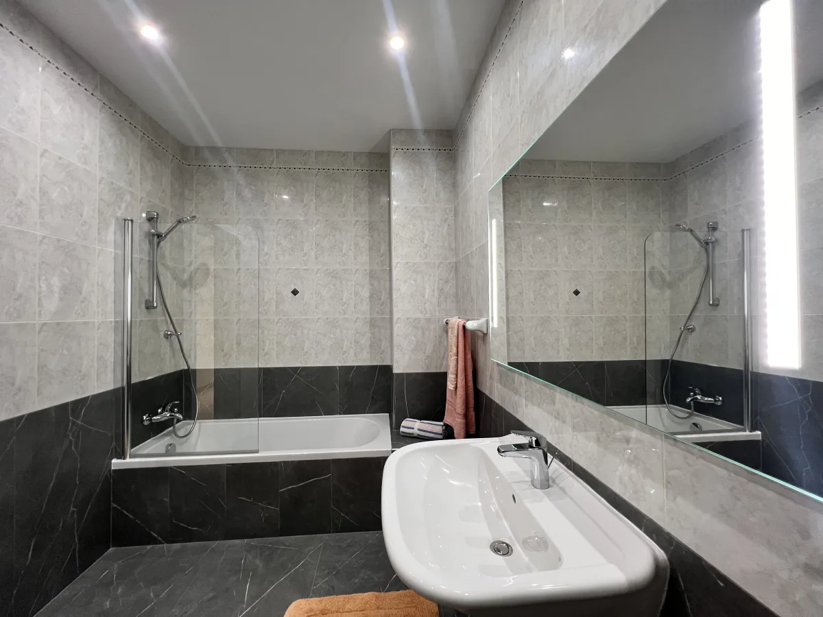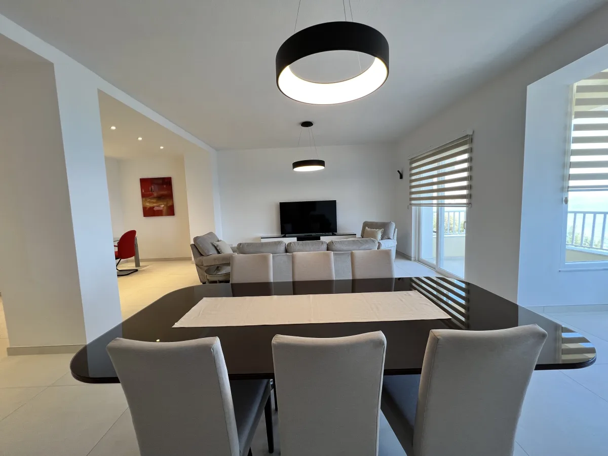 Having just been fully refurbished to a high standard this apartment ticks so many boxes. The open sea views extending to the horizon are a sight to behold, and fill one with a sense of serenity. The view can be enjoyed on the open terrace, or from the winter balcony while sitting in comfortable reading chairs. The open plan kitchen, living and dining area is an exceptionally good size, and extremely well fitted. The kitchen has all the mod-cons and ample space for the most adventurous of chefs, who can cook to their hearts content while enjoying the endless blue sea. The long hallway has space for storage, coat hangers and shoe racks to keep everything tidy. The guest bedrooms are very well sized and have more than enough storage space. The main bedroom is by far the most commanding of the three bedrooms. It is akin to a 5* hotel suite, with a reading area, large wardrobes, a TV fitted into the unit, and still has room to spare.