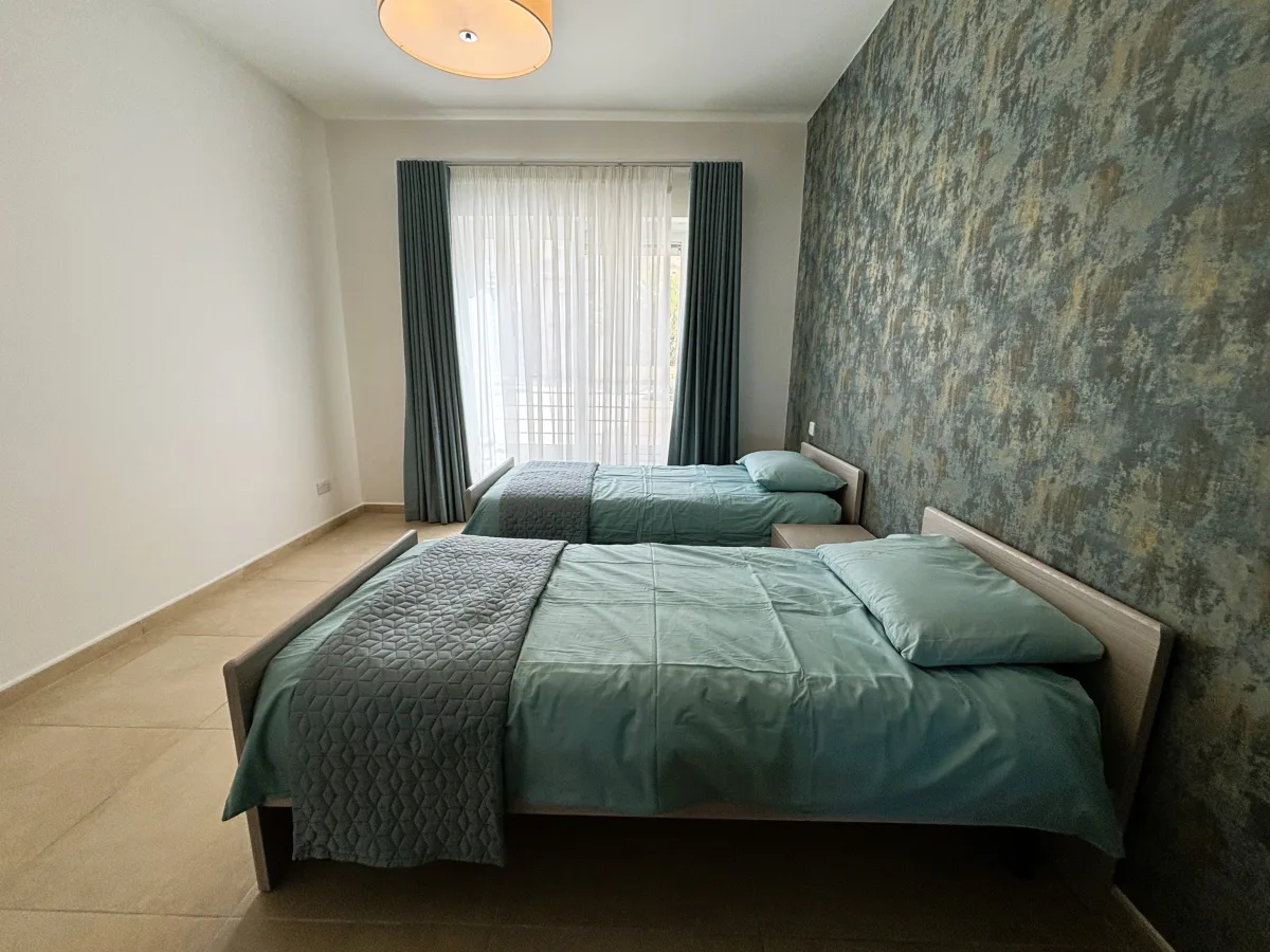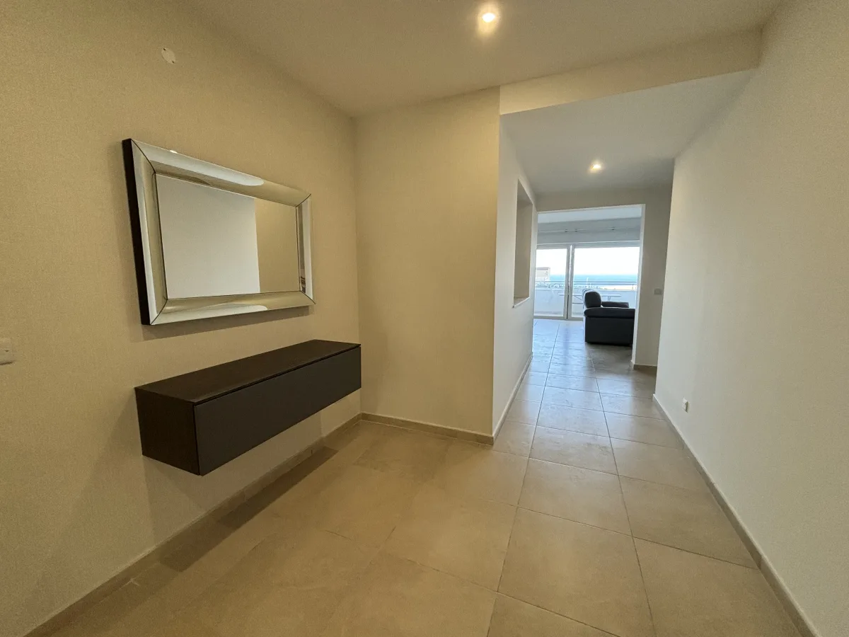 The spacious layout includes an entrance hall leading to a large open plan kitchen, living, and dining area that extends onto a generous terrace overlooking the picturesque Mediterranean sea and the historic Fort. Featuring two double bedrooms, including a master with an en-suite bathroom and walk-in wardrobe, a guest bathroom, laundry room, guest toilet, and an allocated parking space, this property ensures both comfort and convenience.