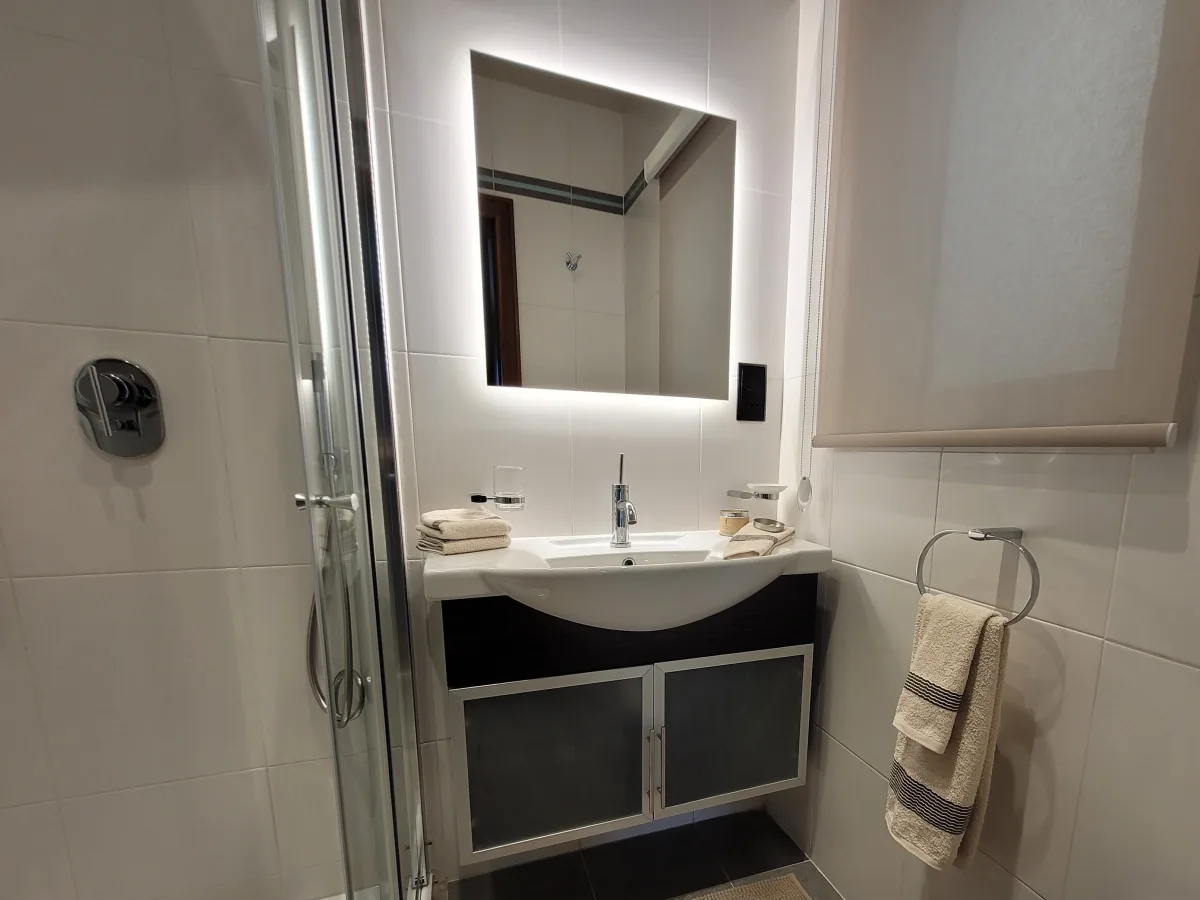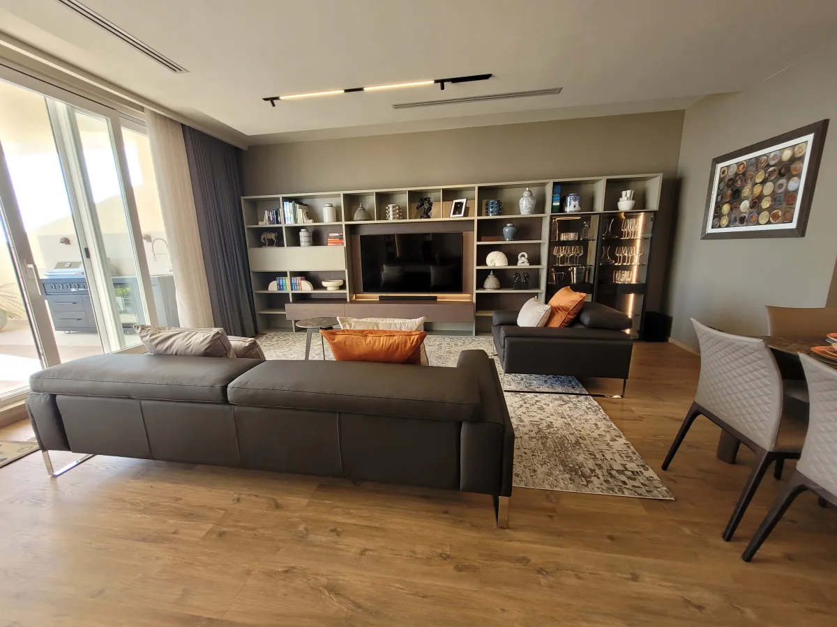 This 200 sqm seafront apartment offers refined luxury with a thoughtful layout. The entrance hall opens to an expansive living and dining space, designed to host six comfortably. The sheltered front terrace features breathtaking sea views and an integrated BBQ station. The separate kitchen is as practical as it is stylish, with a double oven, dishwasher, and water filtration system.