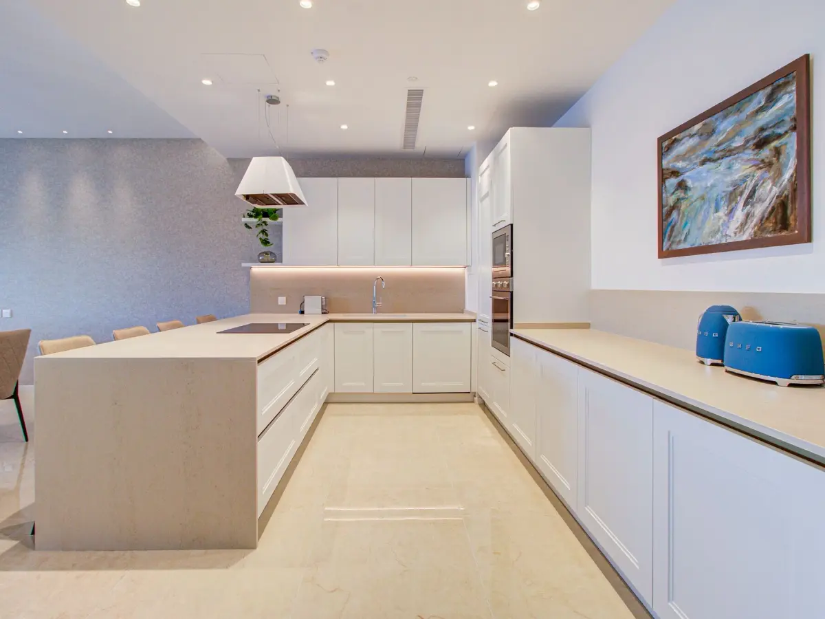The residence features a bright open plan kitchen, living, and dining area leading onto a private balcony, ideal for relaxation or entertaining. Three spacious bedrooms, all with en-suite facilities, ensure both comfort and privacy ,while a guest WC and separate laundry room provide additional practicality.Fully fitted with premium SMEG appliances and finished to the highest standard, this apartment is ready to move into.
