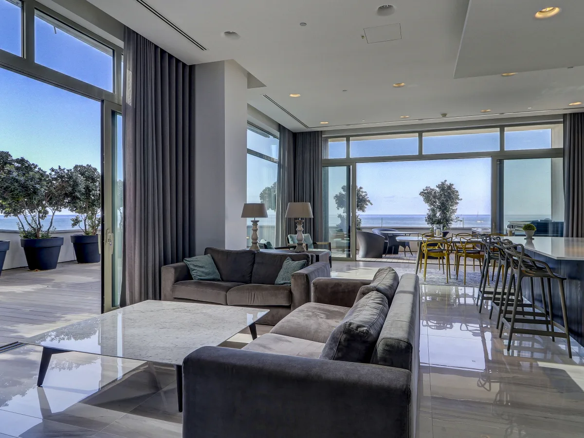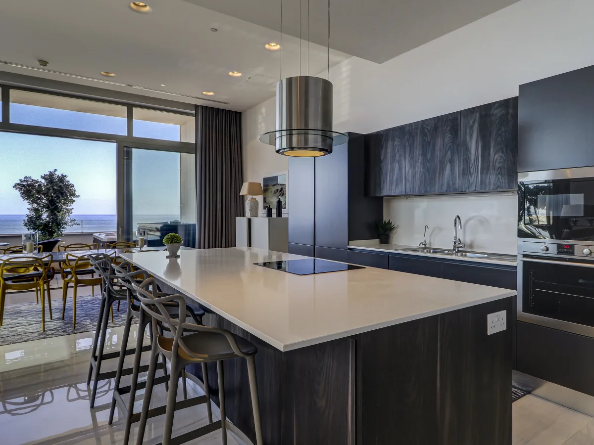 Beautifully finished throughout, the apartment features a bright and spacious open-plan kitchen, living, and dining area leading onto a large wraparound terrace with an east-facing orientation and open sea views. The terrace, complete with a jacuzzi, is ideal for al fresco dining and entertaining.