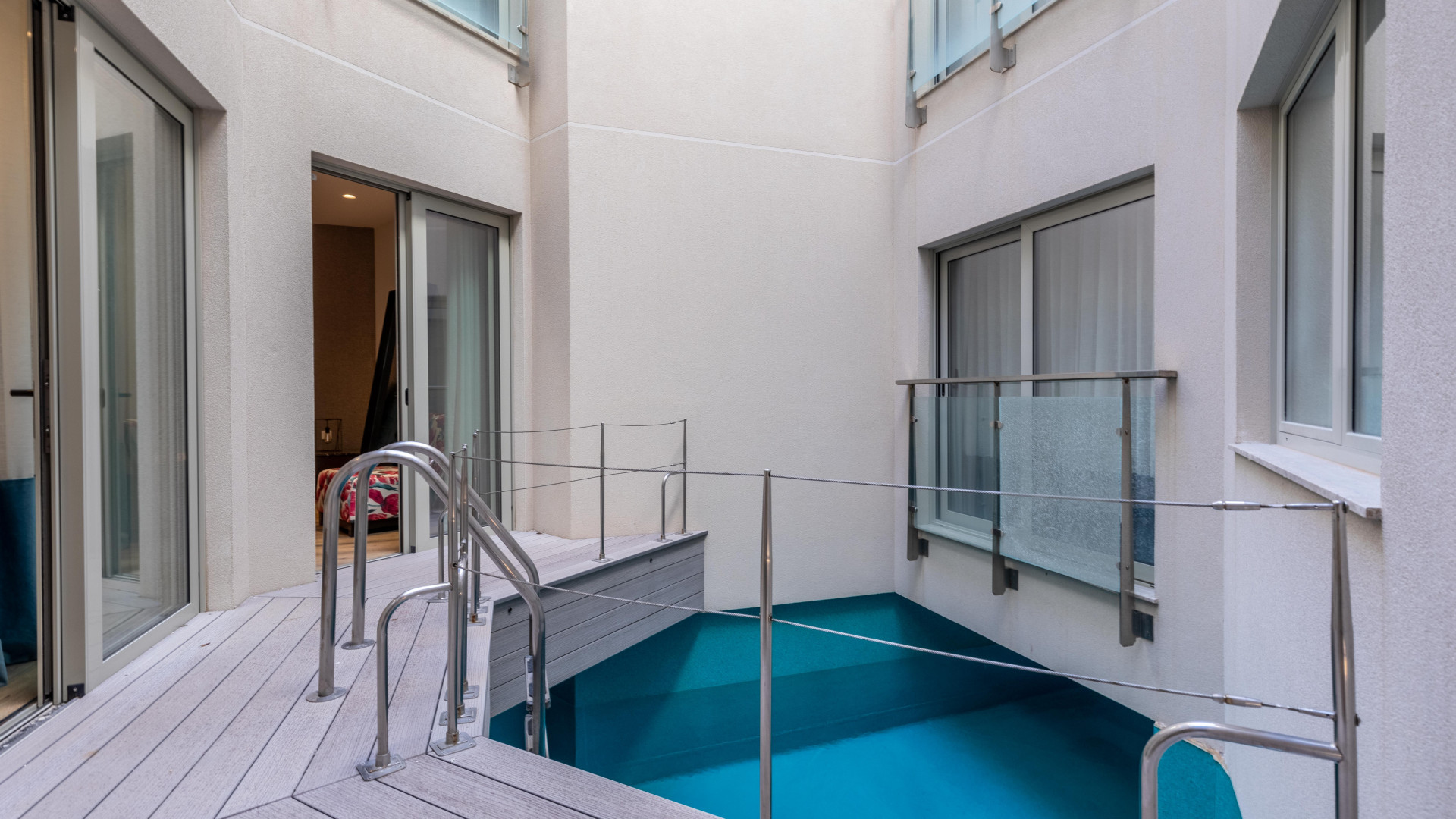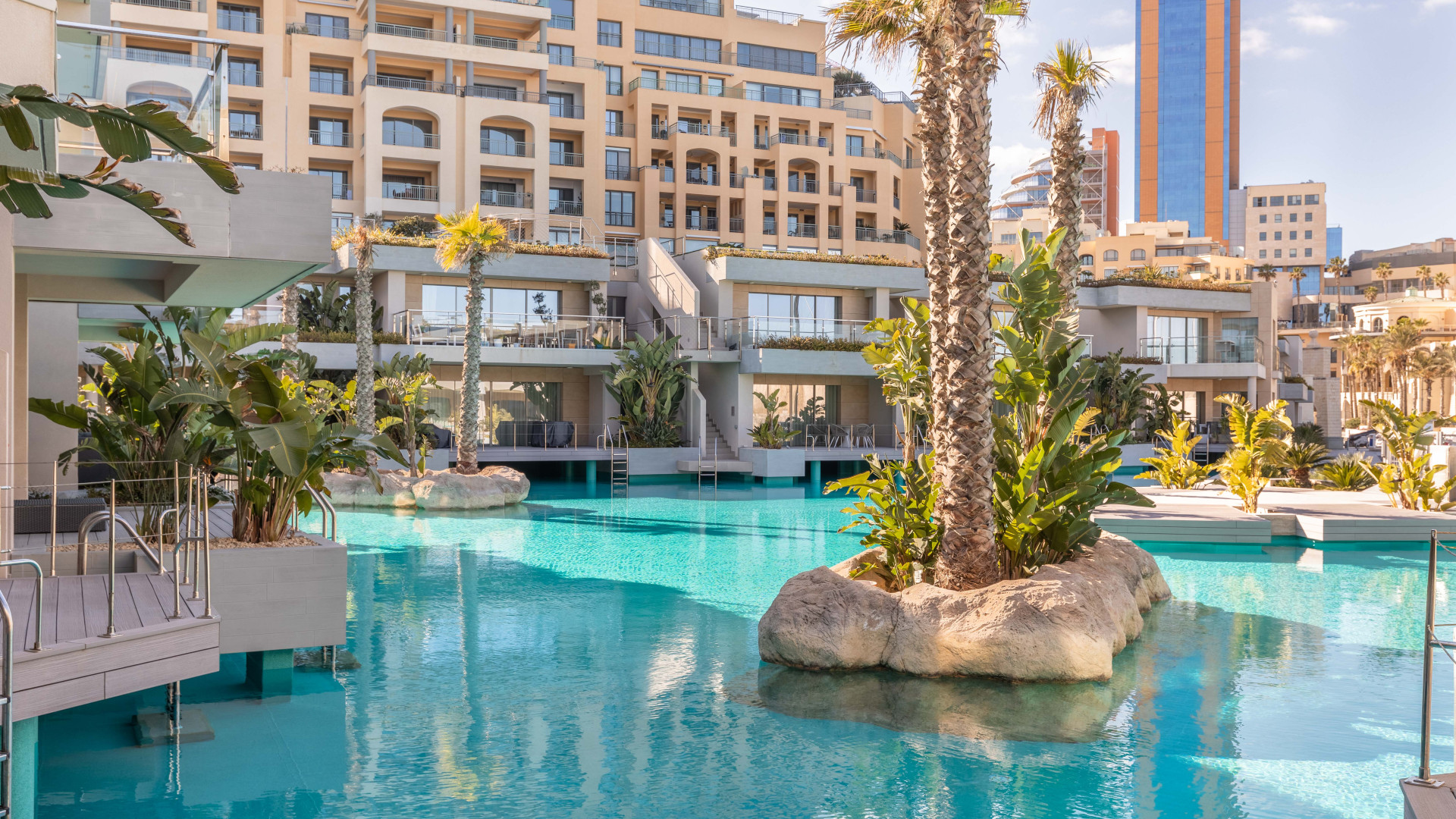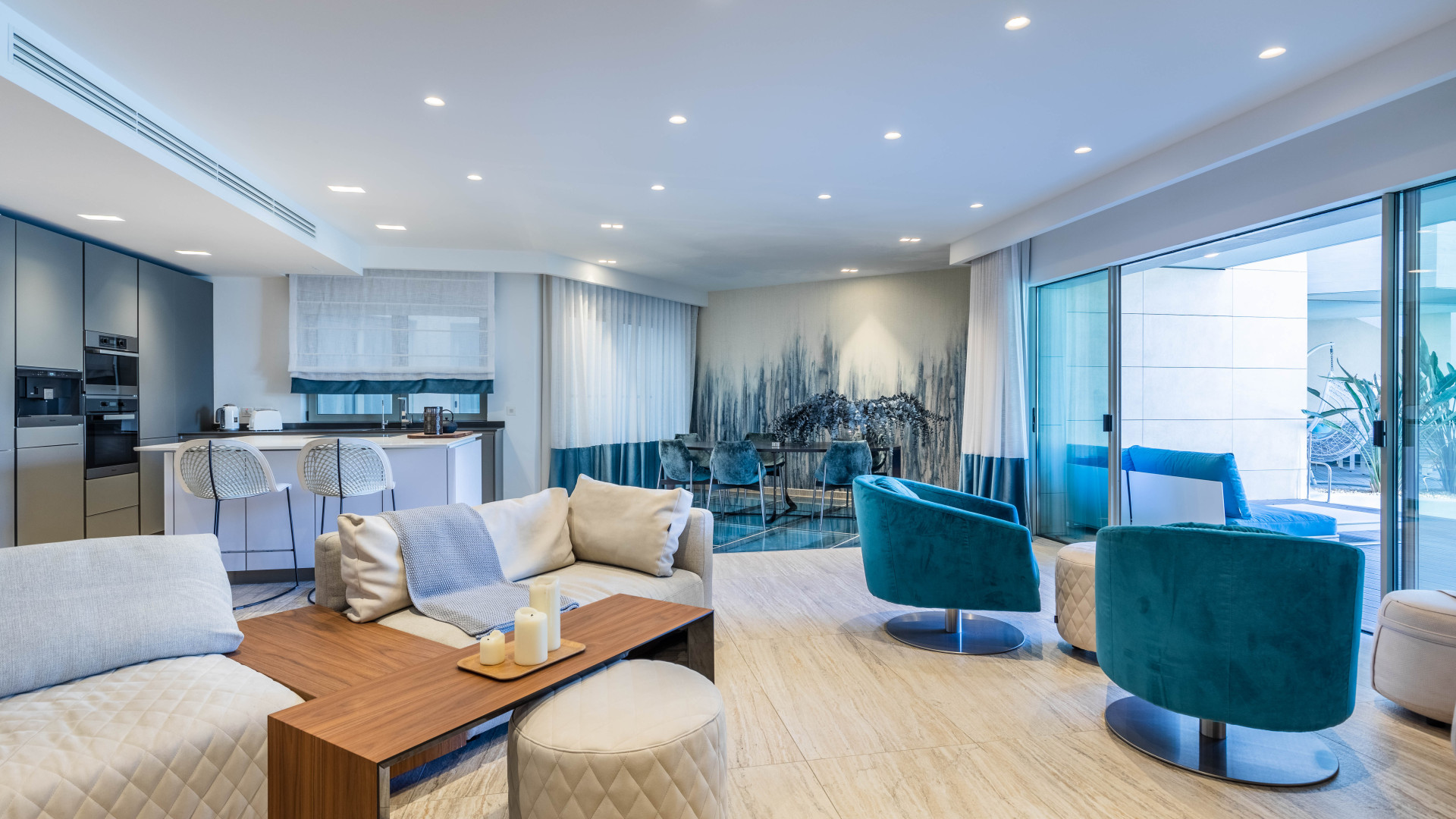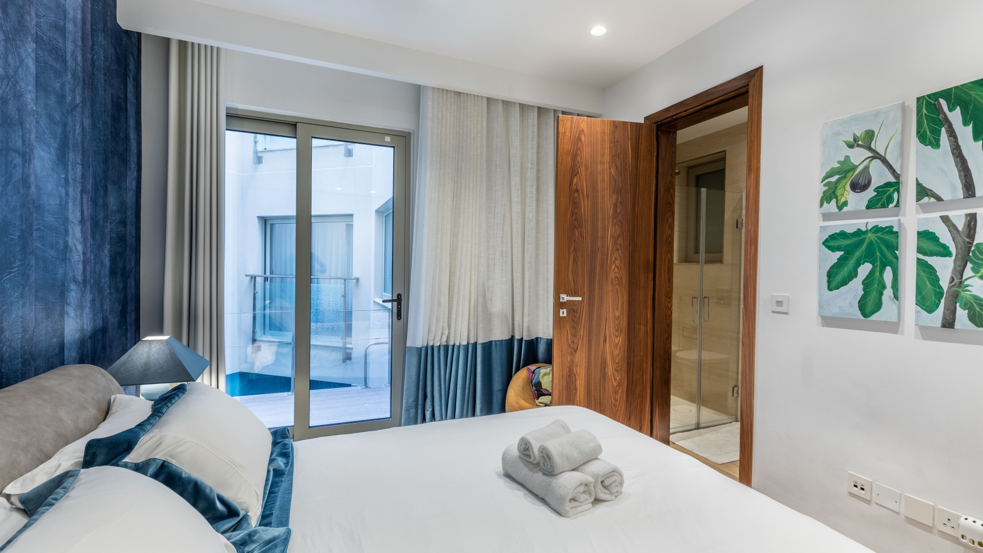 This remarkable apartment encompasses three impeccably proportioned double bedrooms, each accompanied by its own en-suite bathroom, deck, and direct access to the swimming pool. Additionally, the lagoon extends beneath the apartment, offering an area equipped with water-jets for added luxury and enjoyment.
