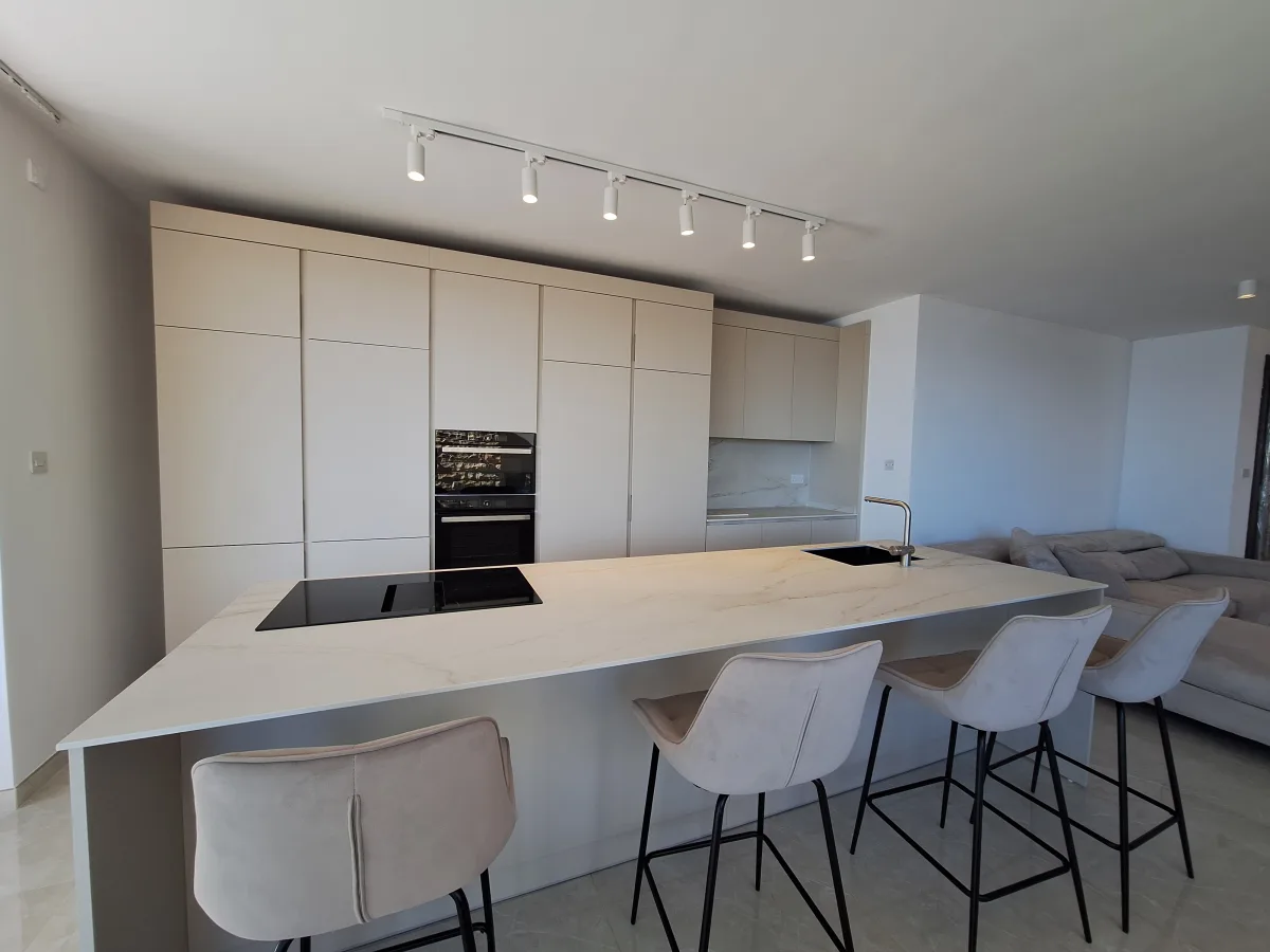 Located the second floor, this exceptional residence boasts a spacious open plan layout seamlessly combining the kitchen, living, and dining areas, opening out to a large front terrace with sea views. The apartment features three double bedrooms, including a master bedroom with en-suite facilities, a main bathroom, and a rear balcony.