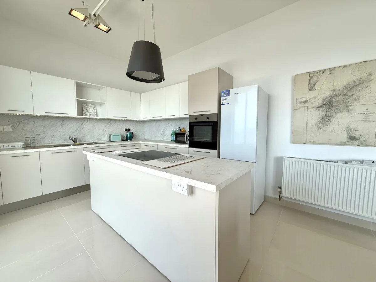 The accommodation opens onto an inviting entrance hall that flows seamlessly into a an open plan kitchen, living, and dining area. From here, large doors extend onto a private terrace, where residents can relax and enjoy uninterrupted views of St Paul’s Island and Xemxija Bay. The home features three comfortable bedrooms, each with its own shower en-suite, as well as a versatile laundry and storage room that also serves as a guest WC.