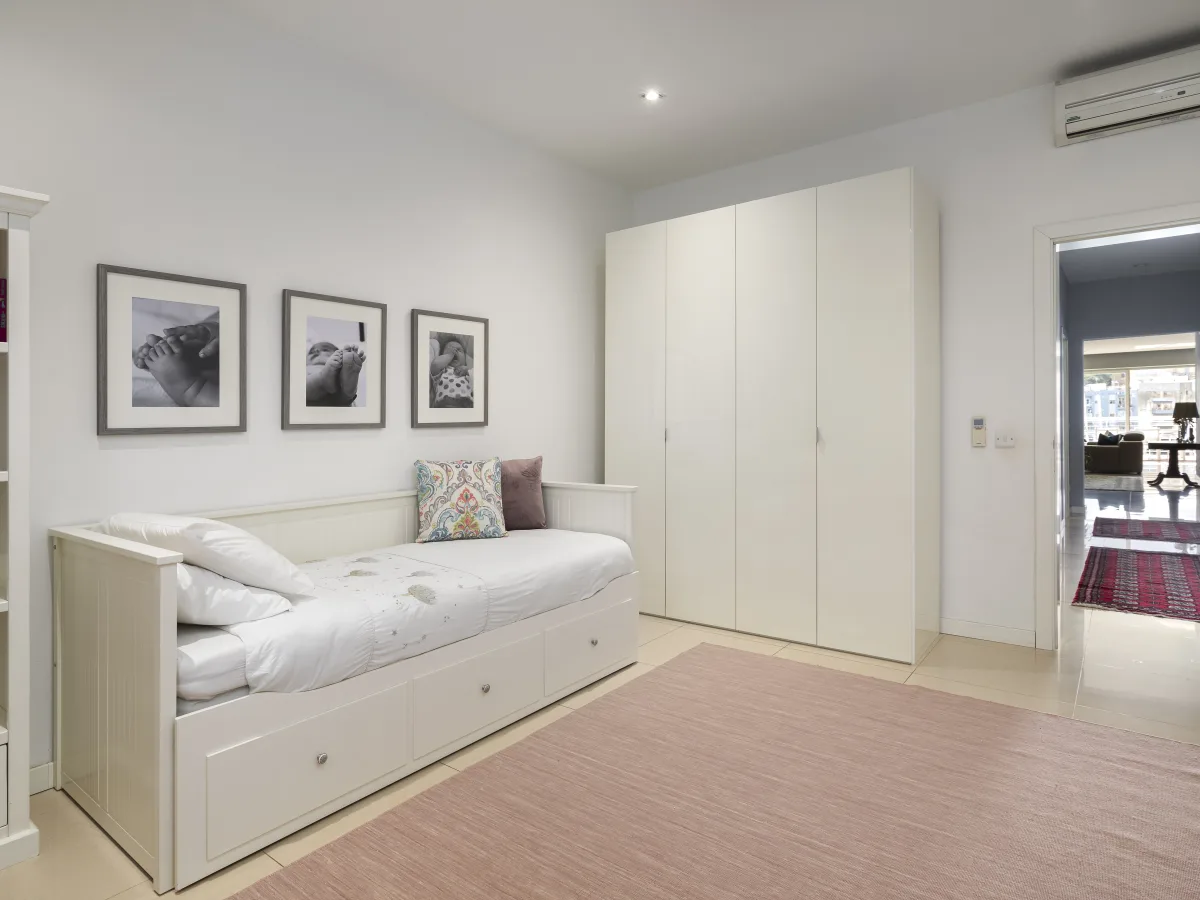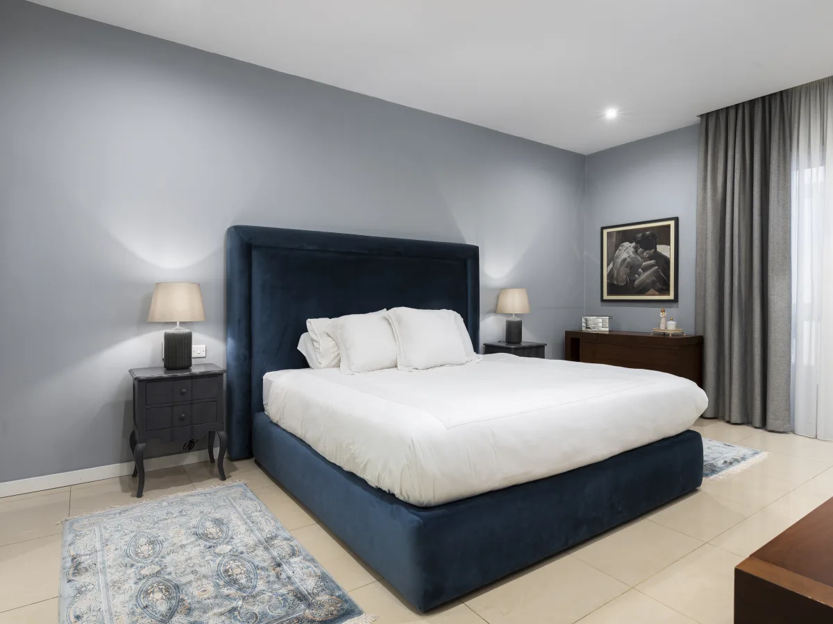 Boasting three well-appointed bedrooms, including a master suite having a walk-in wardrobe and a private en-suite bathroom. There is a dedicated study area providing a quiet space for work and the main bathroom is elegantly designed, complementing the overall luxury of the apartment. Additionally, one finds a practical laundry room and a convenient box room for extra storage.