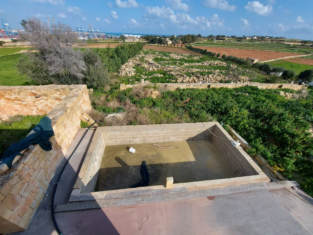 Complimented with an amazing five tumoli or 5580sqm of surrounding land, this abode enjoys a practical layout with a welcoming hallway leading onto a central courtyard bathing the property in natural light. A gorgeous living, dining room leads out to a 32 sqm pool and lavish deck area which in turn opens up onto the extensive land surrounding the property. A separate kitchen overlooks the pool area, whereas two bedrooms, one having an en-suite and a family bathroom are accessible from the courtyard. A sweet little parcel of land beyond the kitchen can lend itself to a conservatory, ideal for those warm balmy evenings throughout the different seasons.